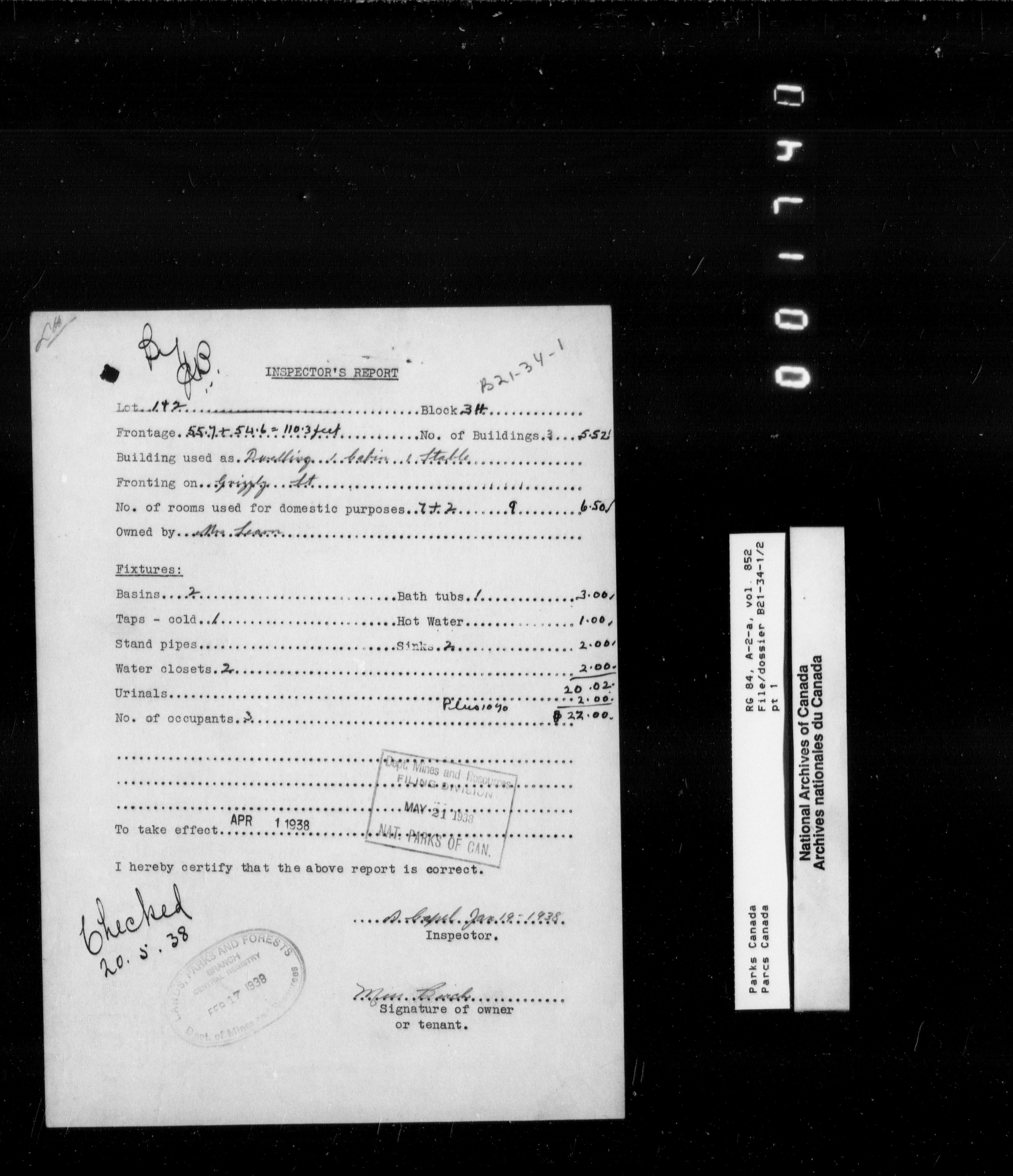 Department of Canadian Heritage, Canadian Parks Service : Park/subject classification system - 9556