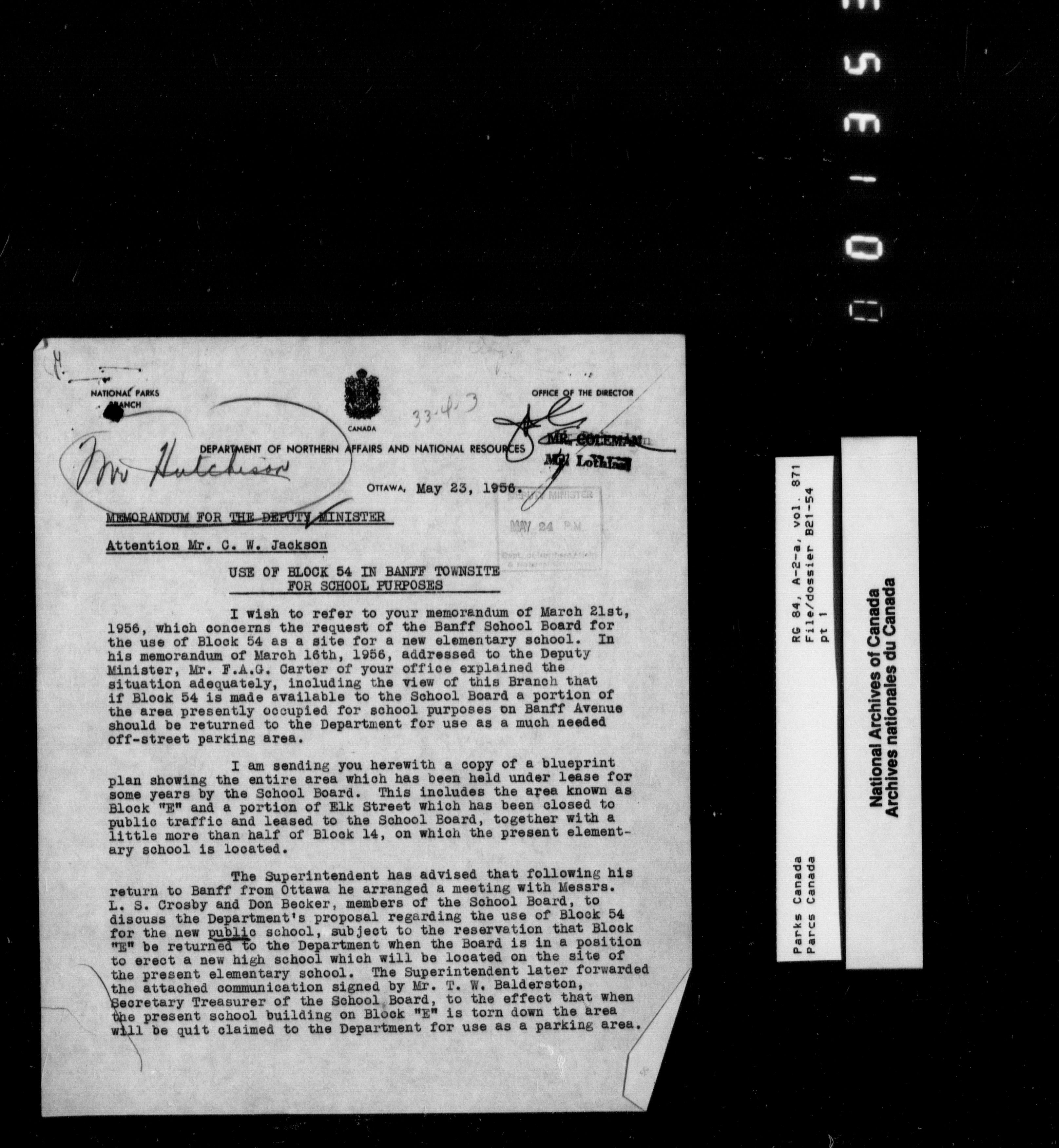 Department of Canadian Heritage, Canadian Parks Service : Park/subject classification system - 9568