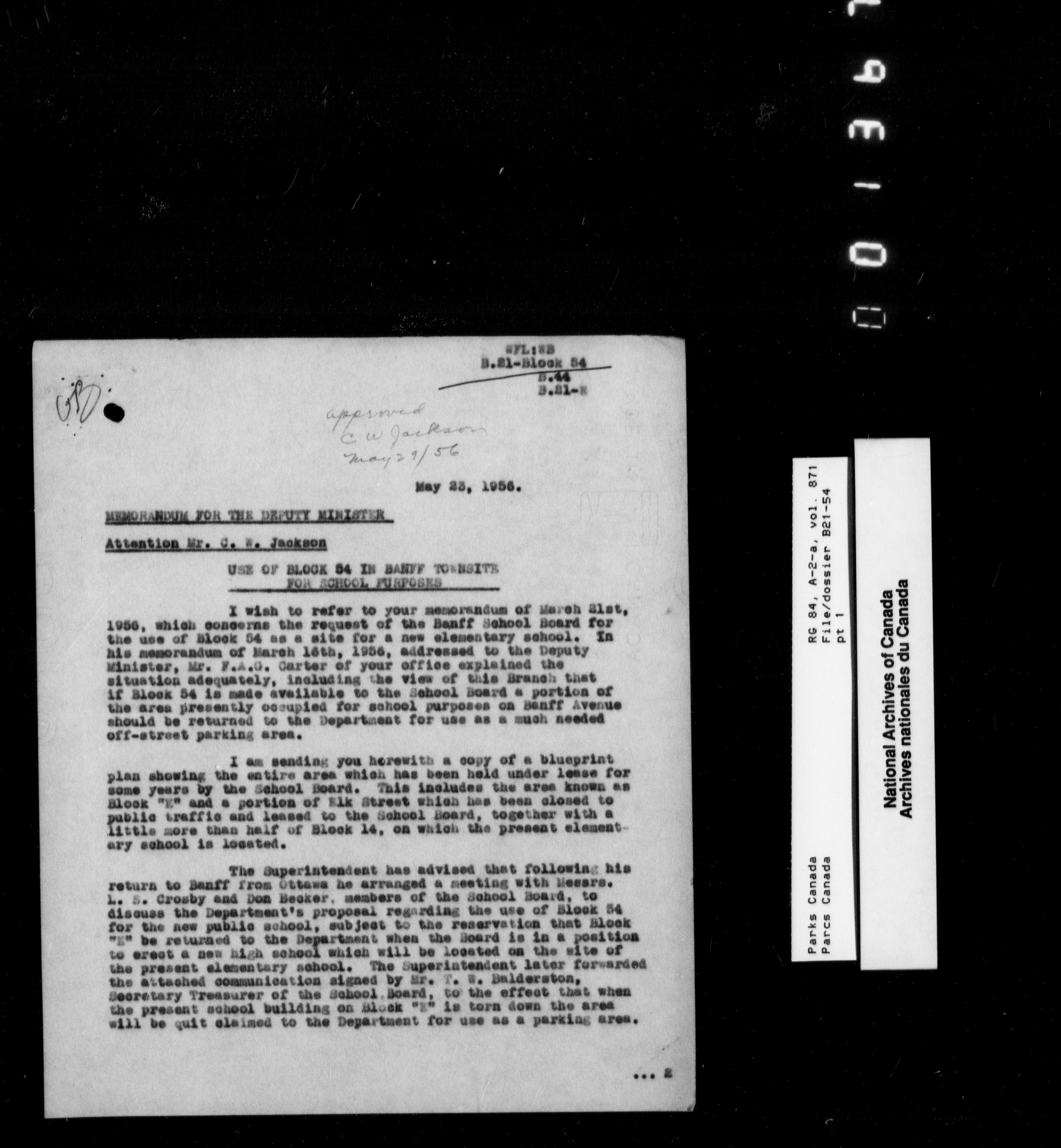 Department of Canadian Heritage, Canadian Parks Service : Park/subject classification system - 9568