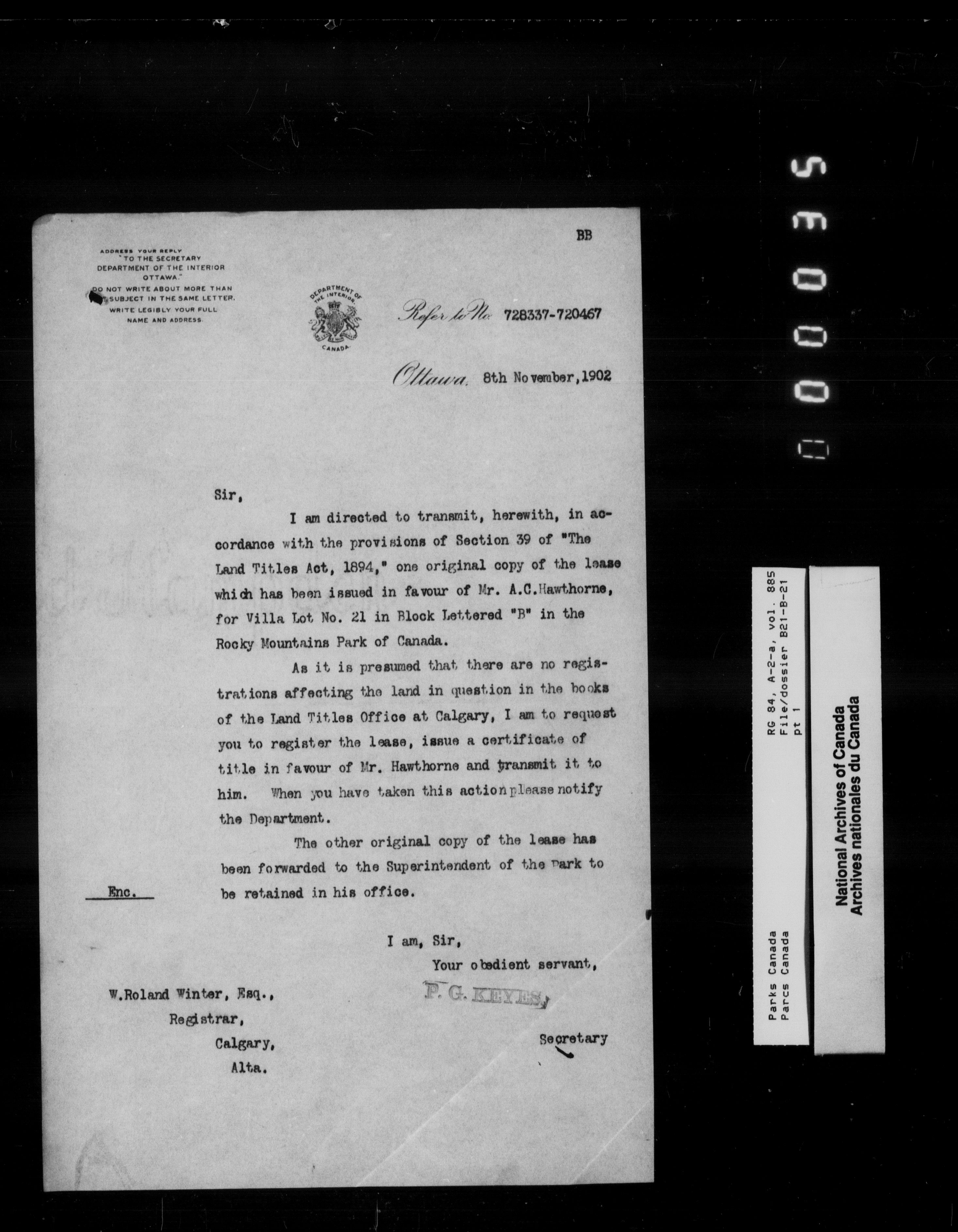 Department of Canadian Heritage, Canadian Parks Service : Park/subject classification system - 9579