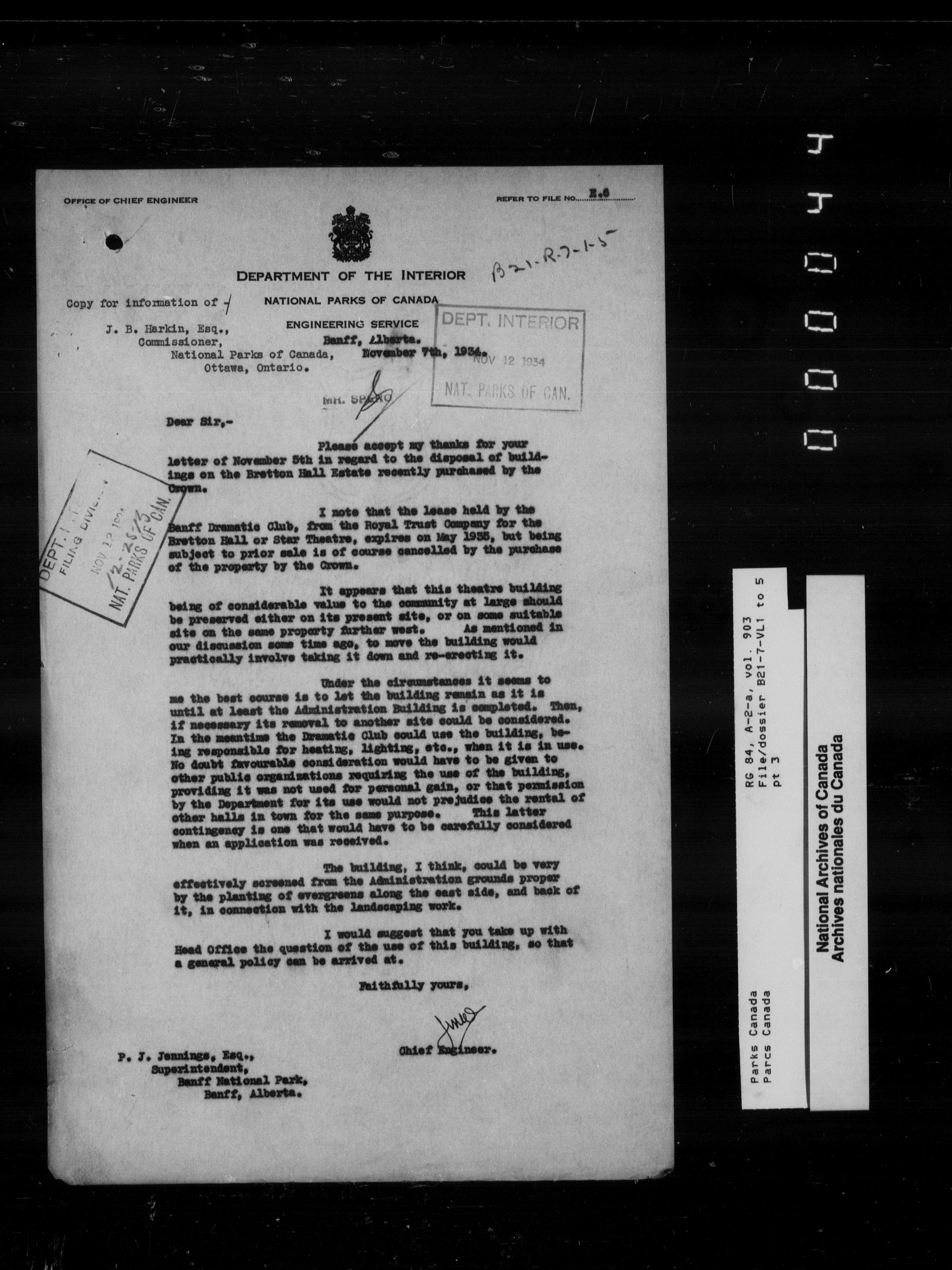 Department of Canadian Heritage, Canadian Parks Service : Park/subject classification system : T-9593