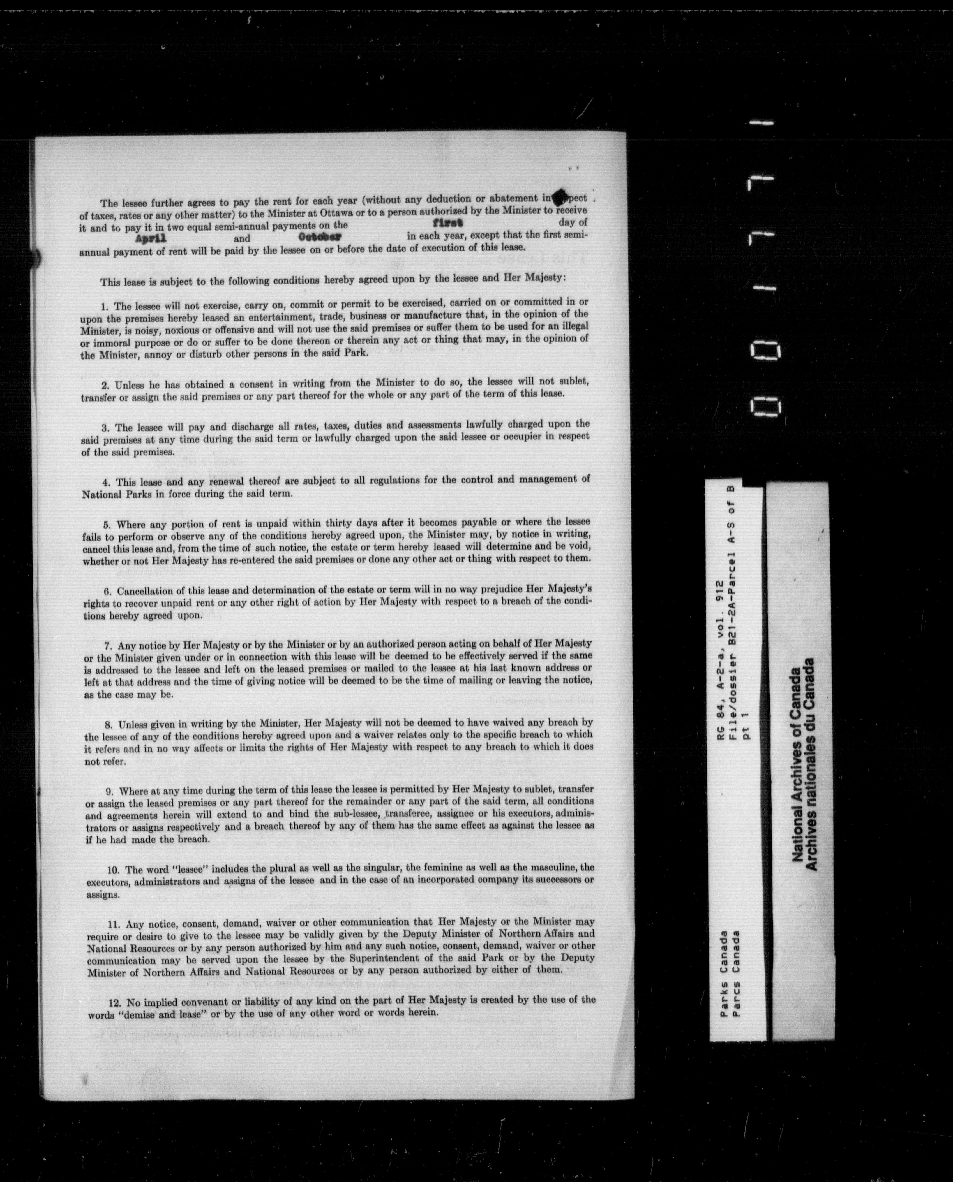 Department of Canadian Heritage, Canadian Parks Service : Park/subject classification system : T-9598