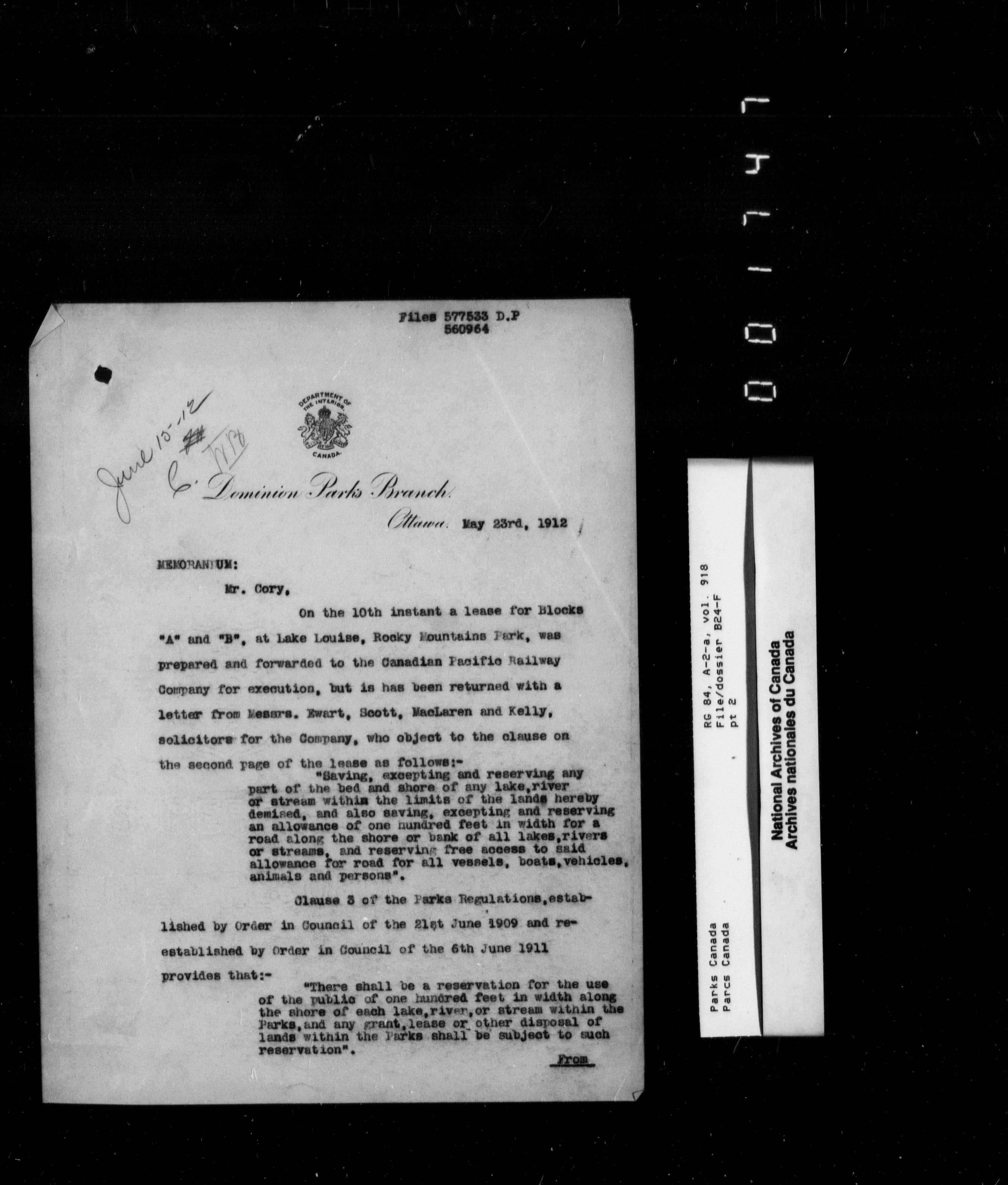 Department of Canadian Heritage, Canadian Parks Service : Park/subject classification system - 9603