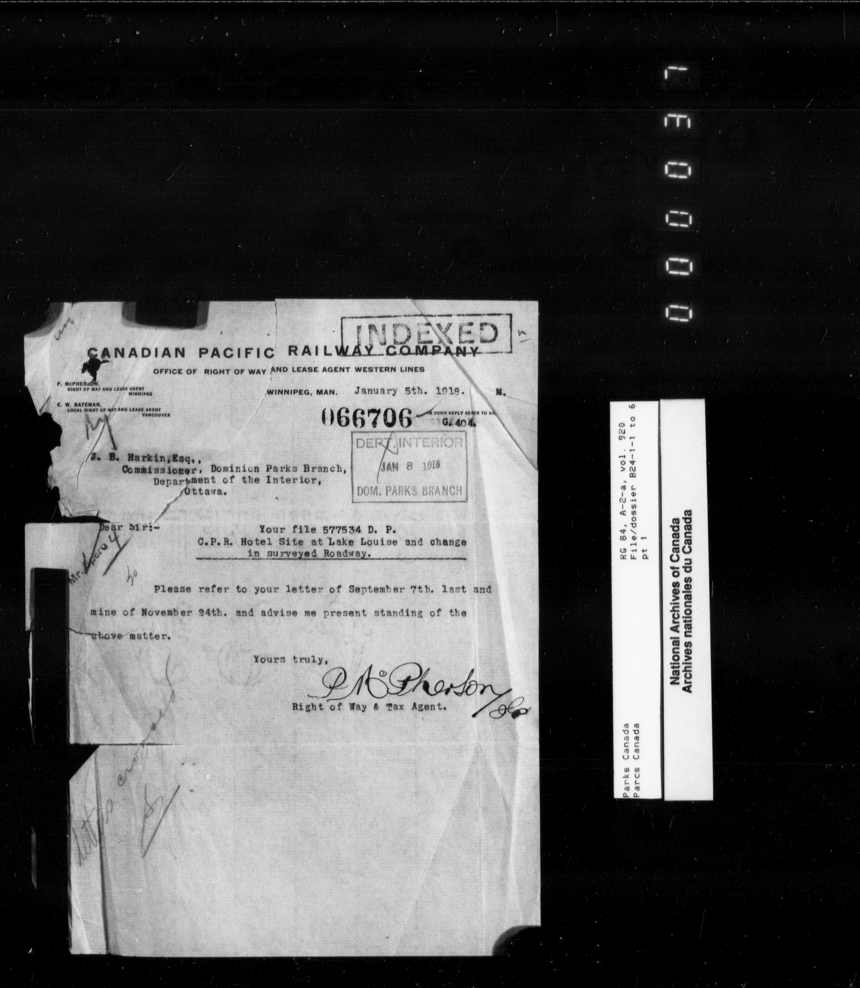 Department of Canadian Heritage, Canadian Parks Service : Park/subject classification system - 9605