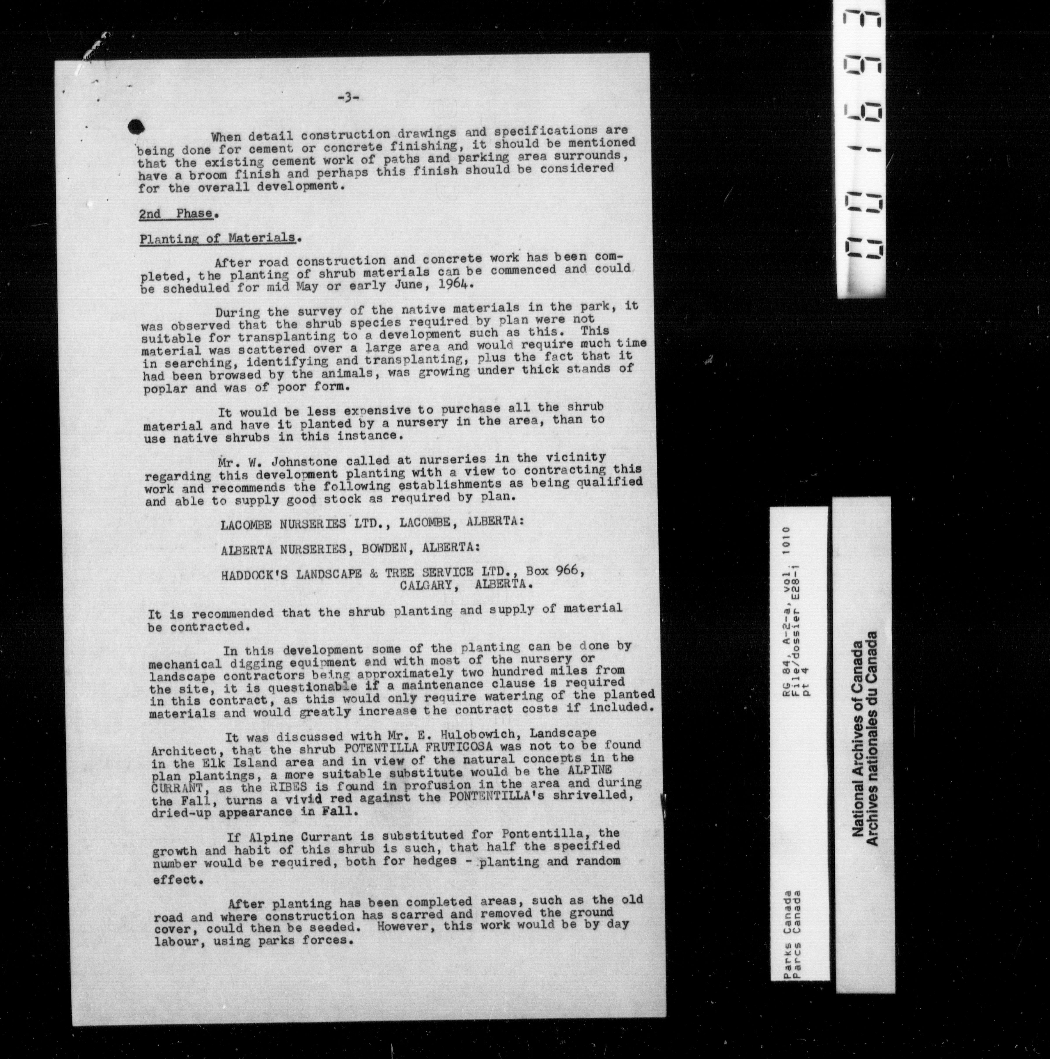 Department of Canadian Heritage, Canadian Parks Service : Park/subject classification system - 9611