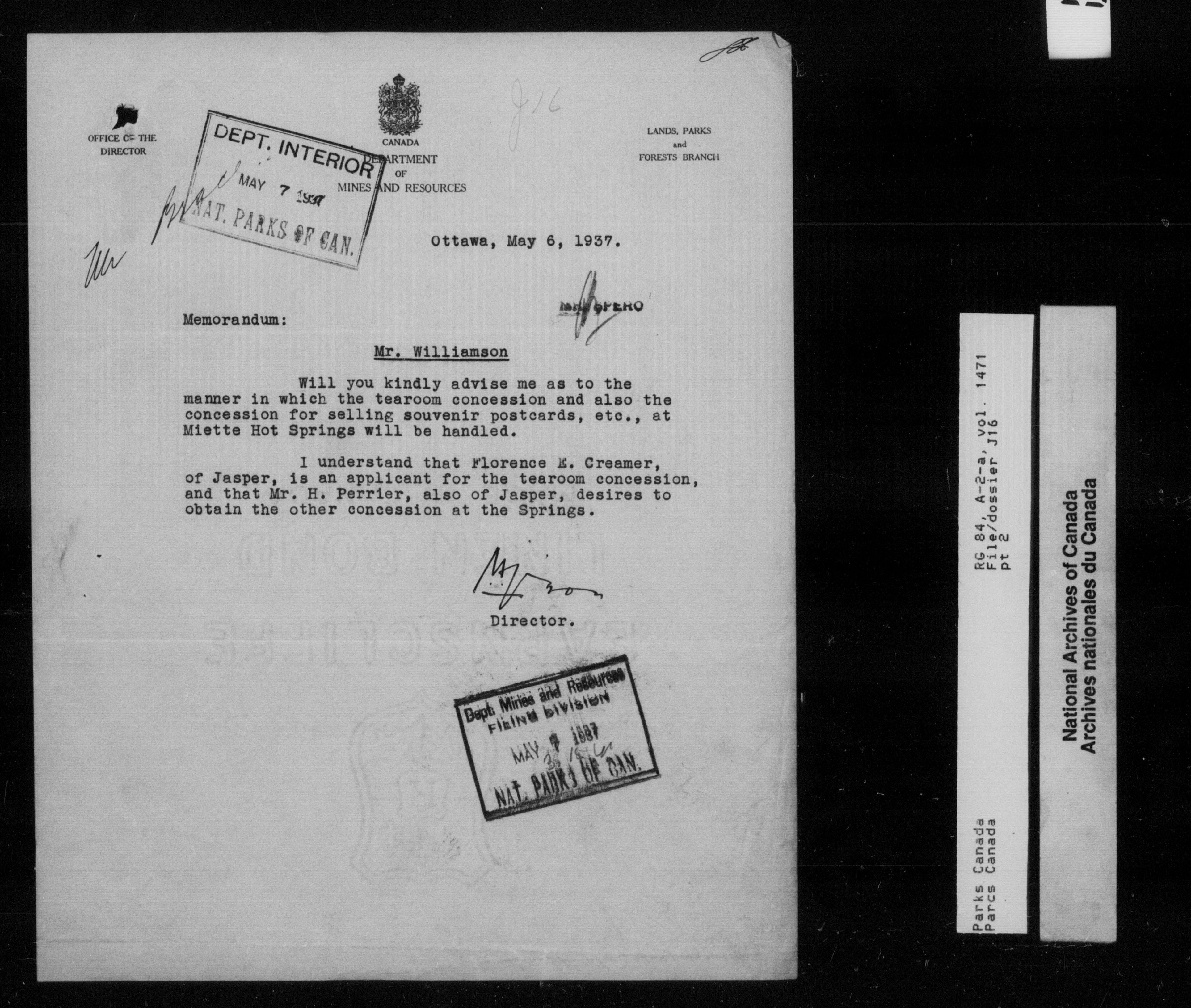 Department of Canadian Heritage, Canadian Parks Service : Park/subject classification system - 9616