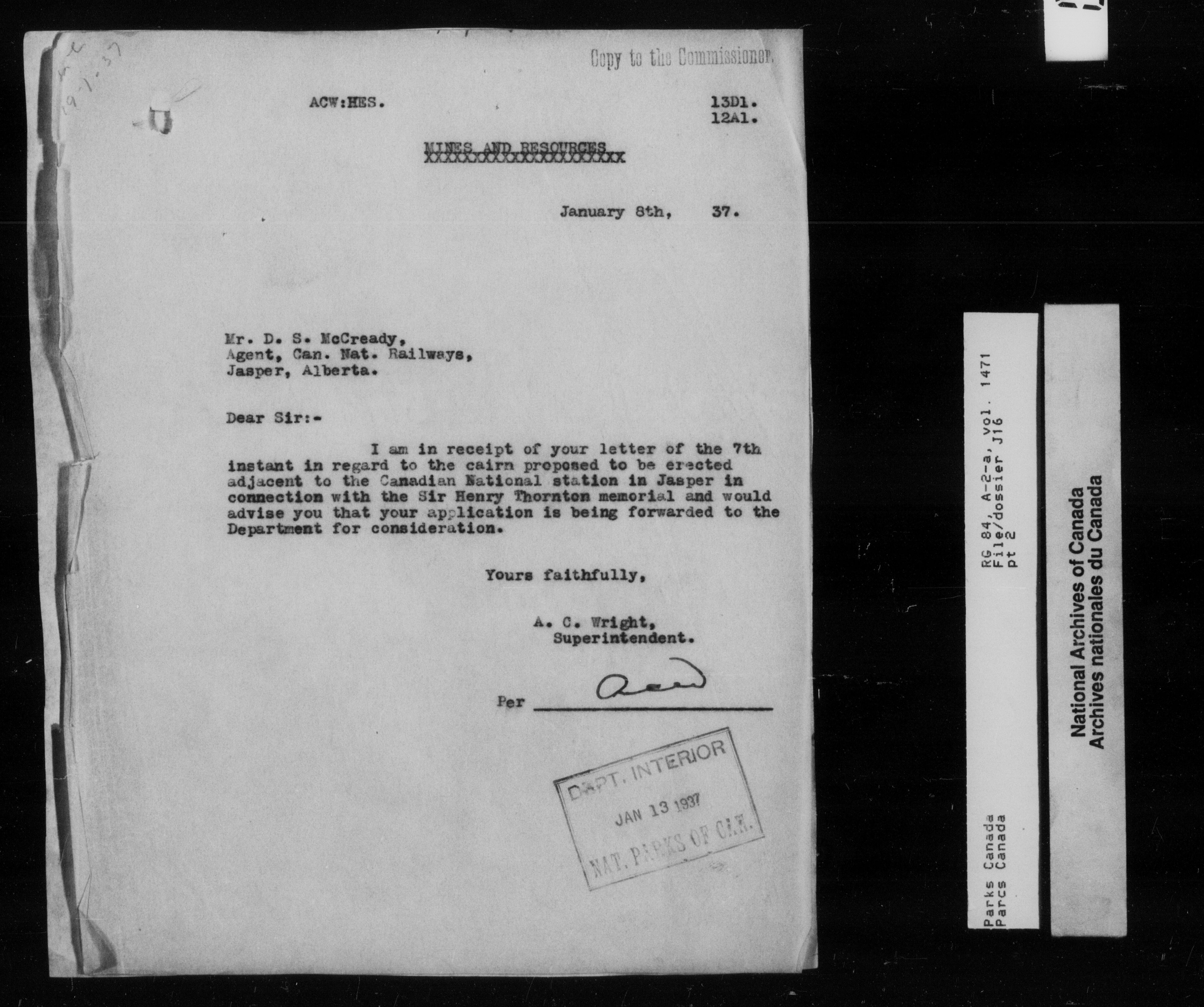 Department of Canadian Heritage, Canadian Parks Service : Park/subject classification system - 9616