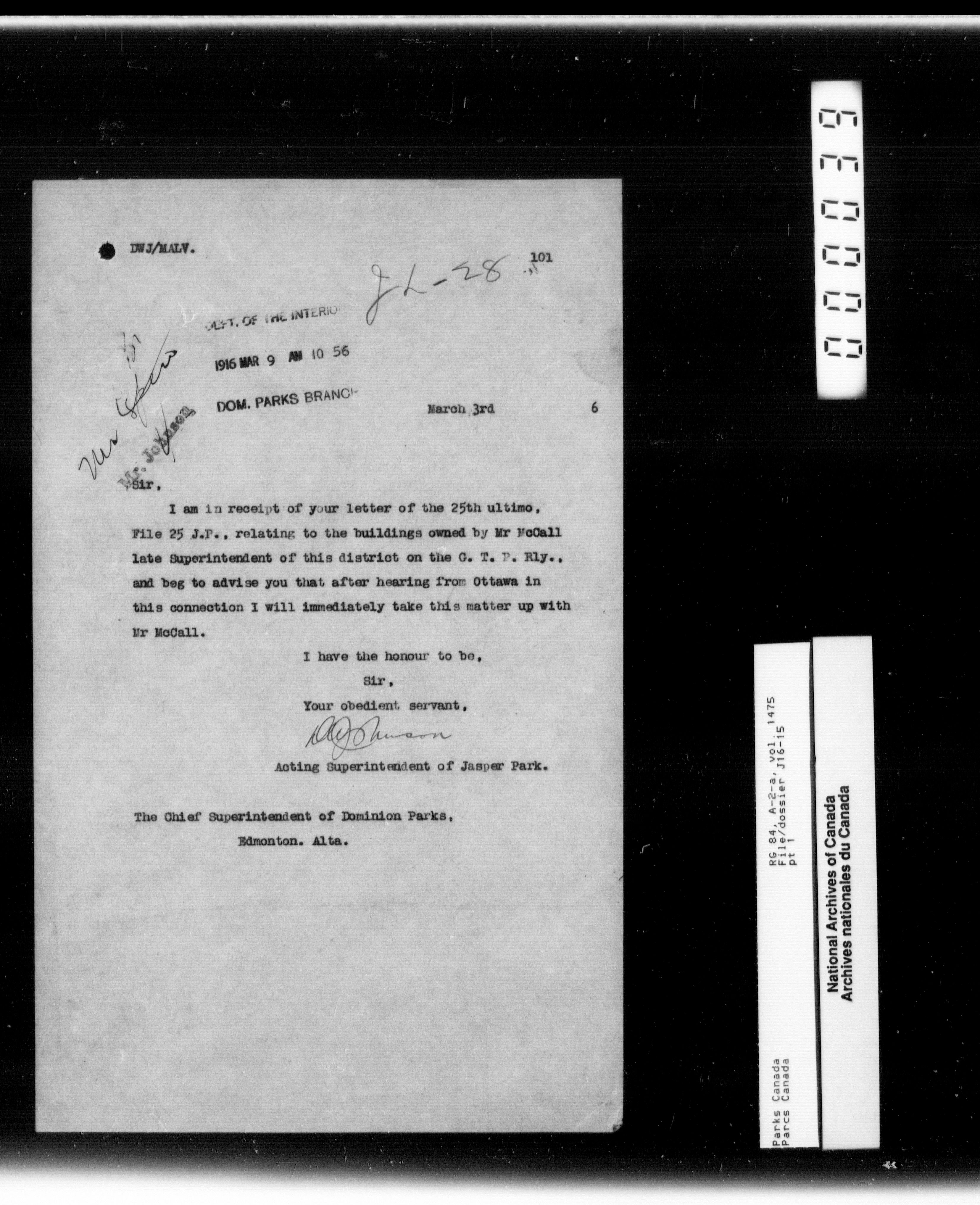 Department of Canadian Heritage, Canadian Parks Service : Park/subject classification system - 9620