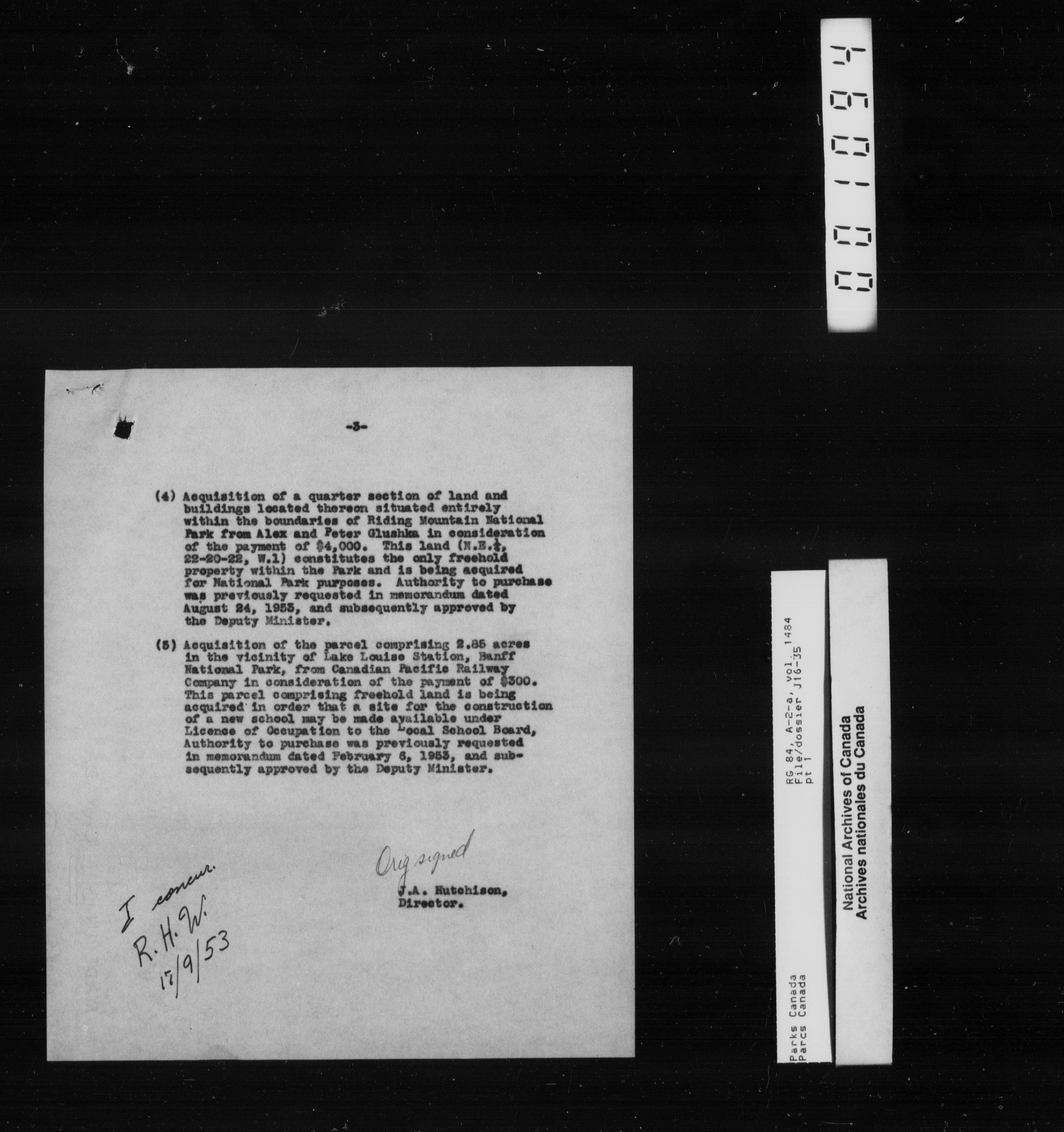 Department of Canadian Heritage, Canadian Parks Service : Park/subject classification system - 9625