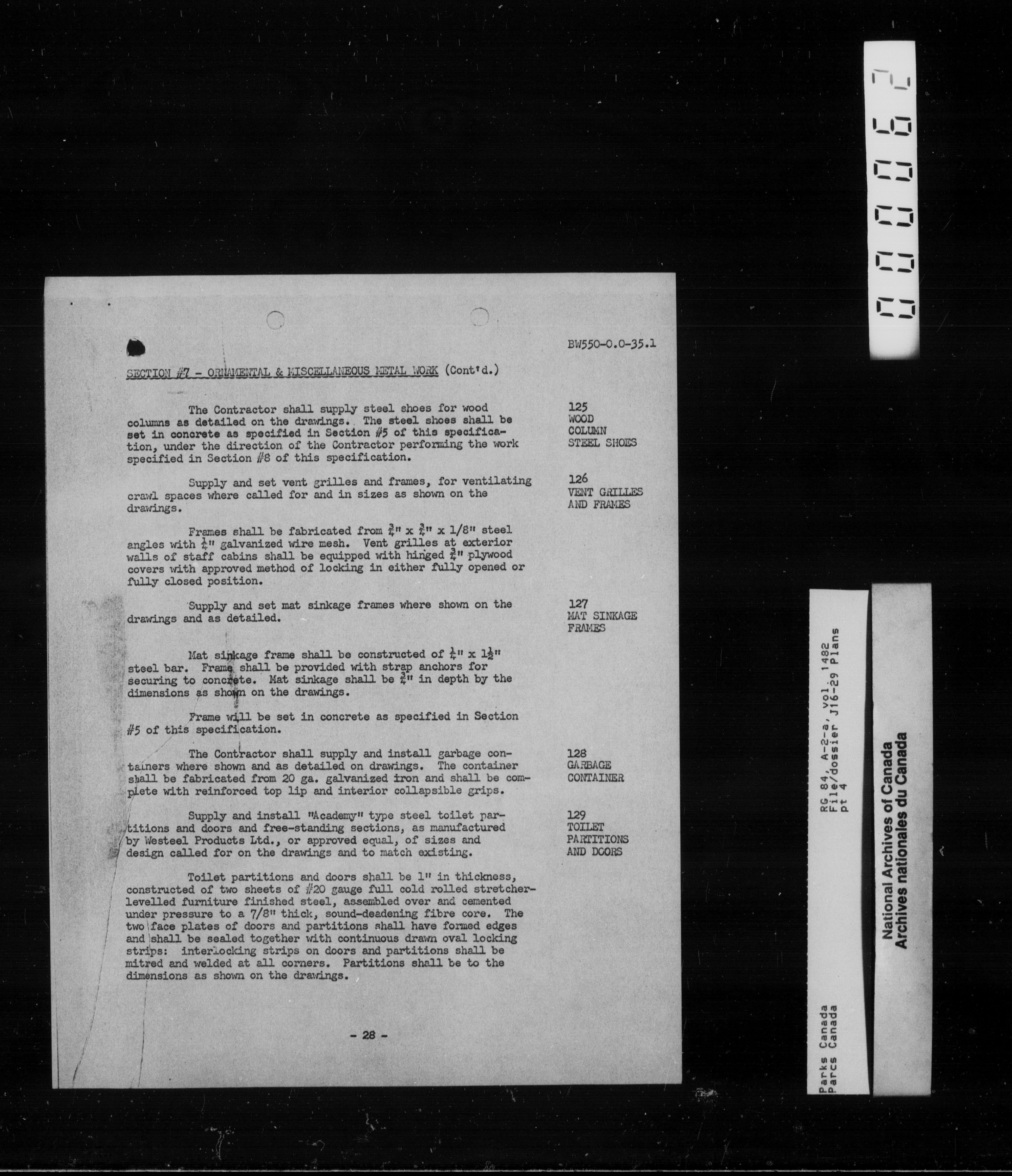 Department of Canadian Heritage, Canadian Parks Service : Park/subject classification system - 9625