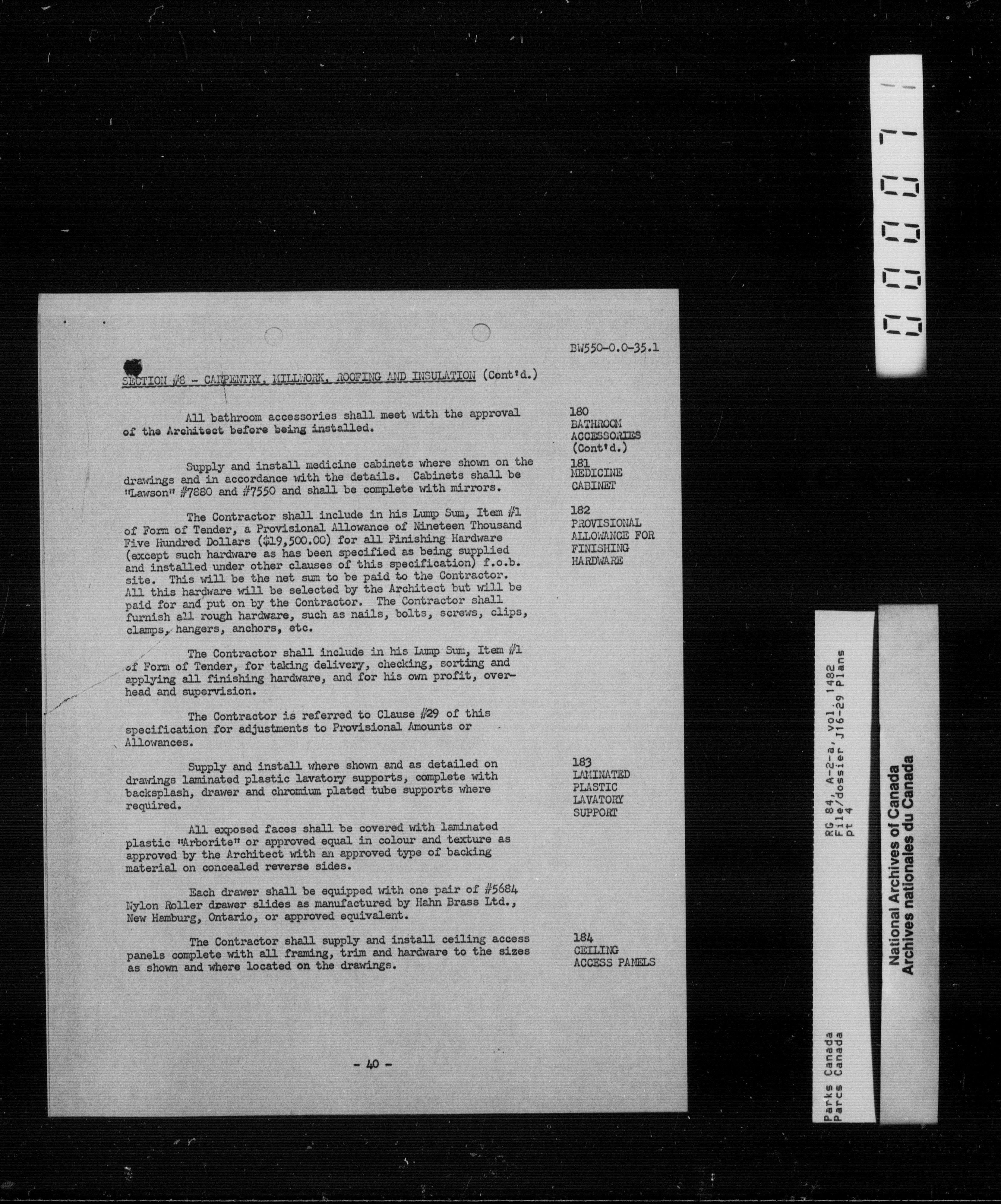 Department of Canadian Heritage, Canadian Parks Service : Park/subject classification system - 9625