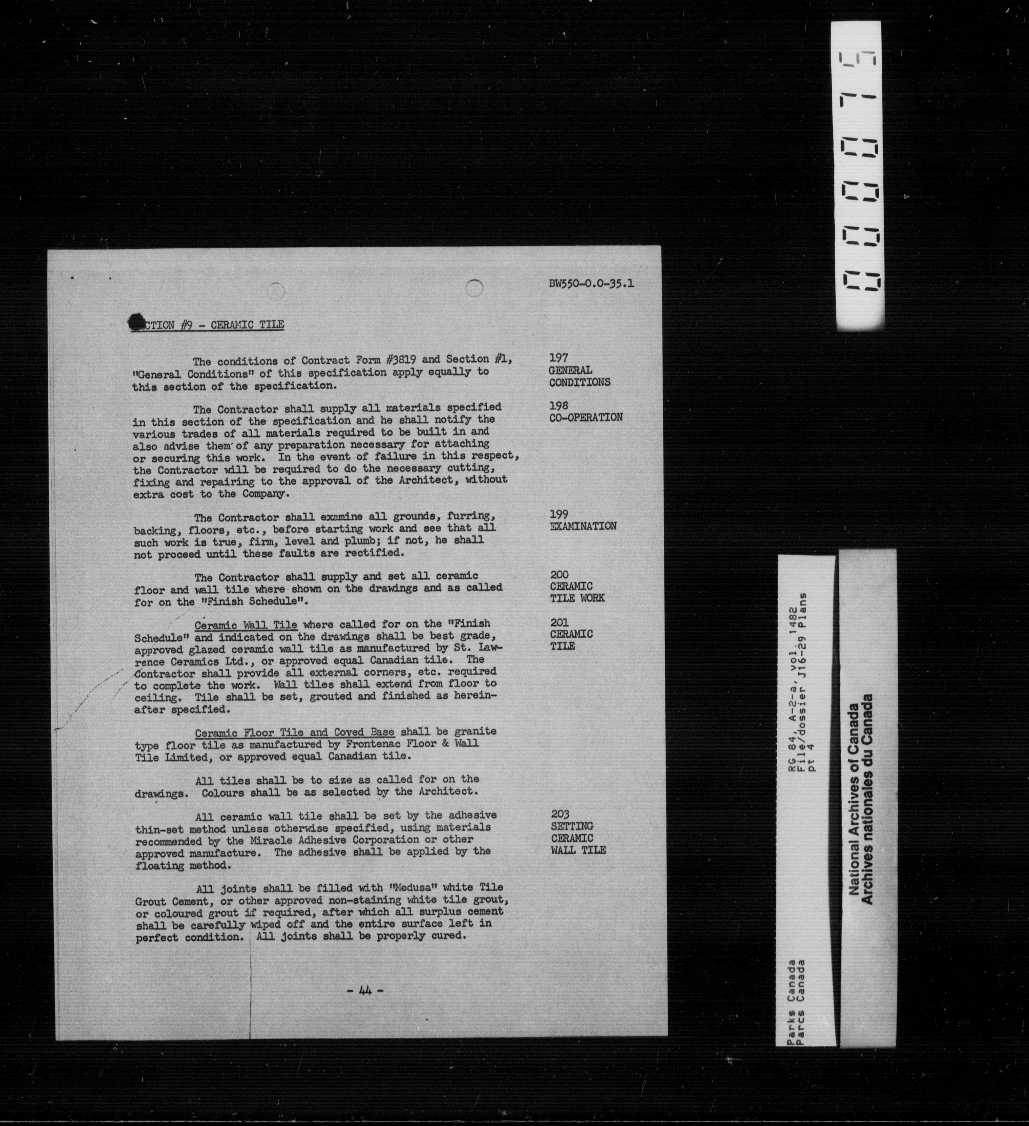 Department of Canadian Heritage, Canadian Parks Service : Park/subject classification system - 9625