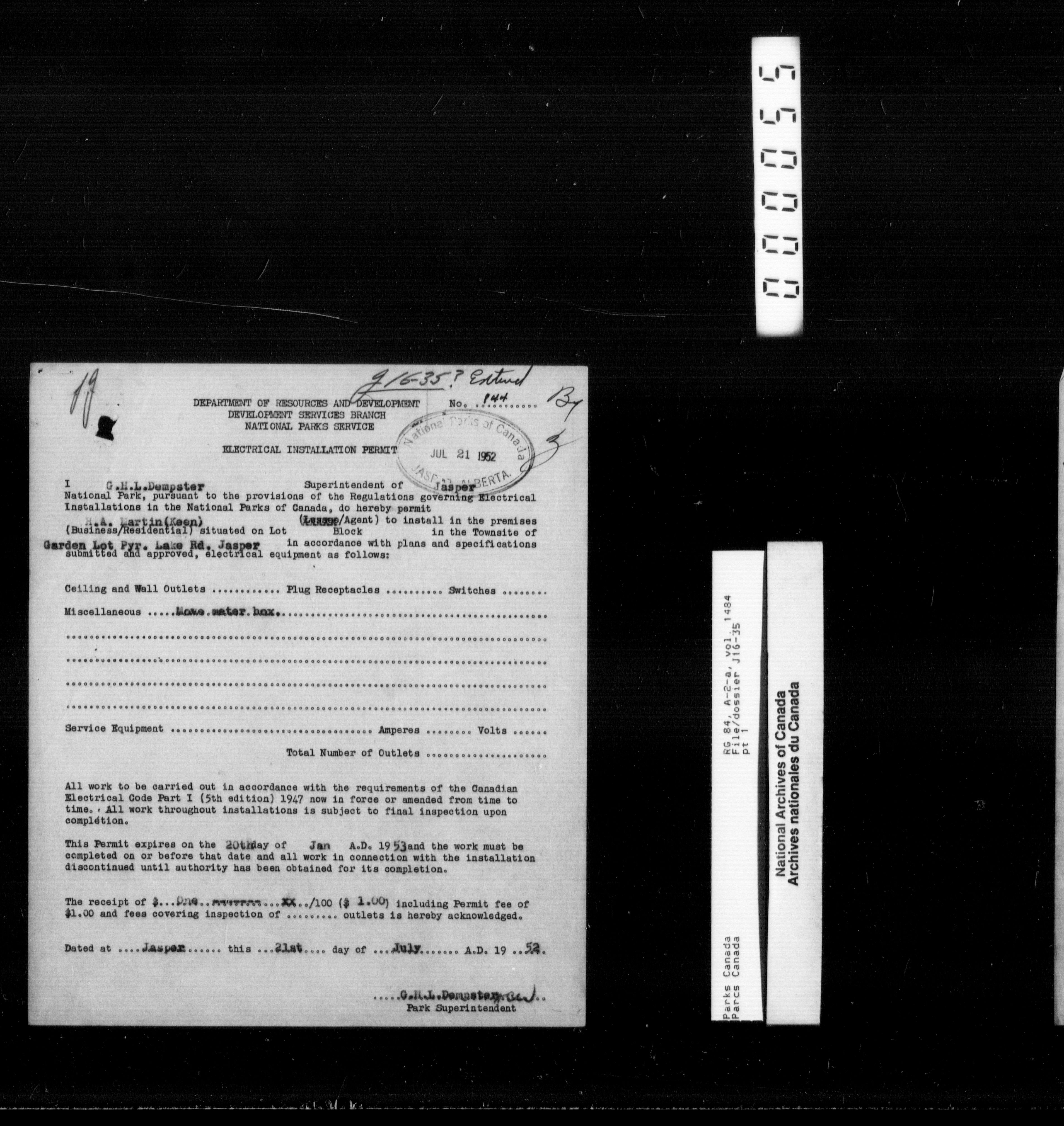 Department of Canadian Heritage, Canadian Parks Service : Park/subject classification system - 9626