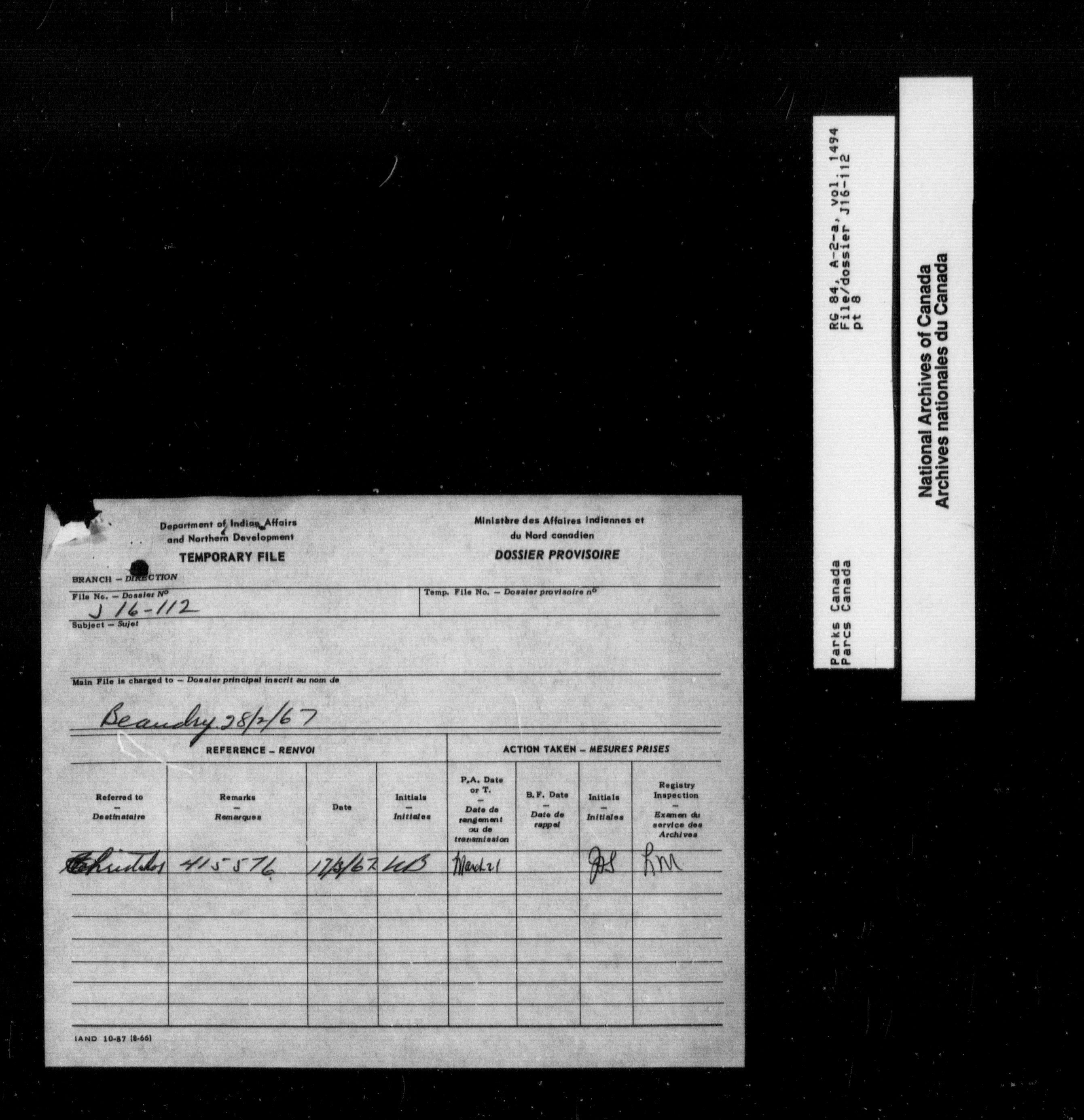 Department of Canadian Heritage, Canadian Parks Service : Park/subject classification system - 9633