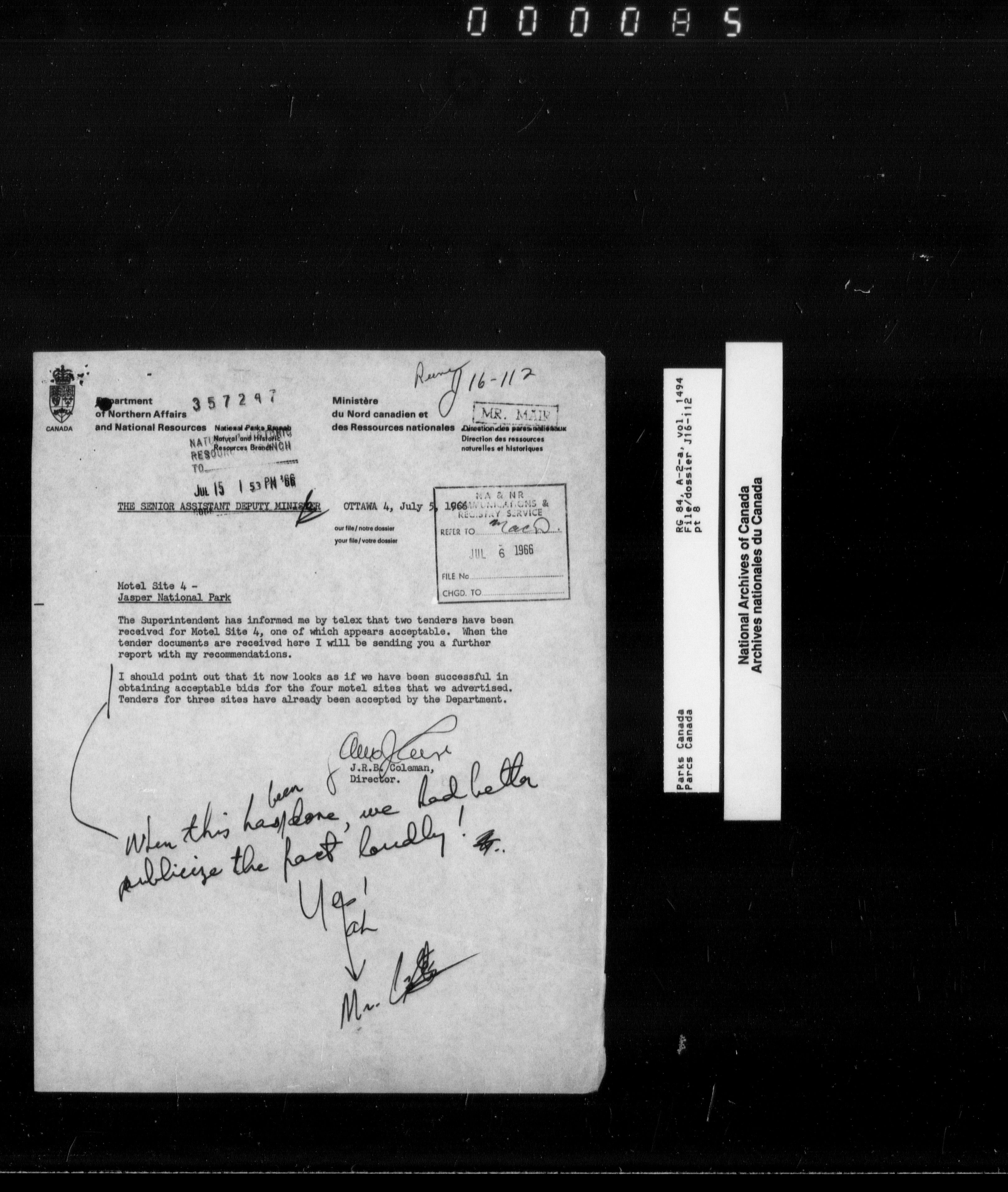 Department of Canadian Heritage, Canadian Parks Service : Park/subject classification system - 9634