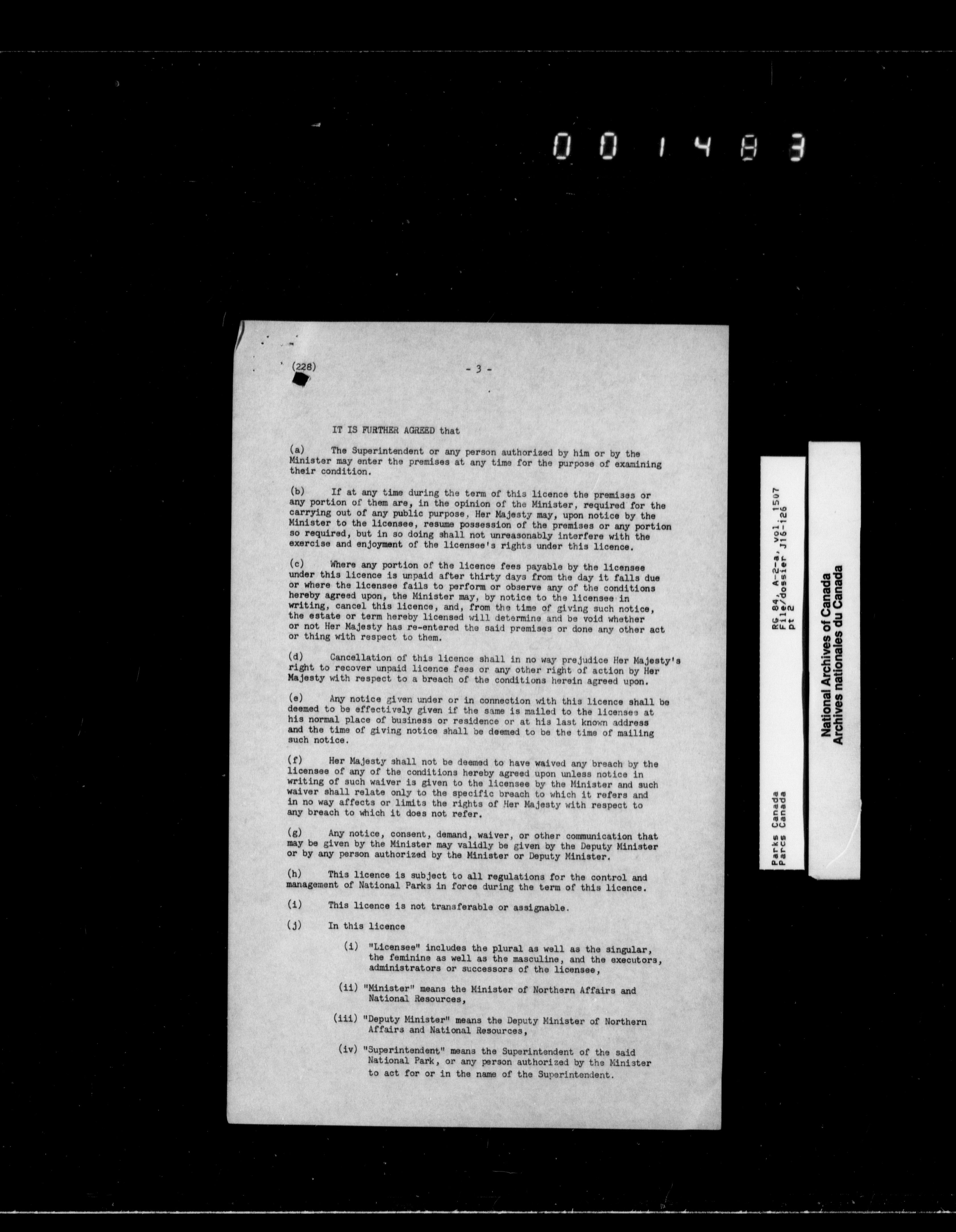 Department of Canadian Heritage, Canadian Parks Service : Park/subject classification system - 9643