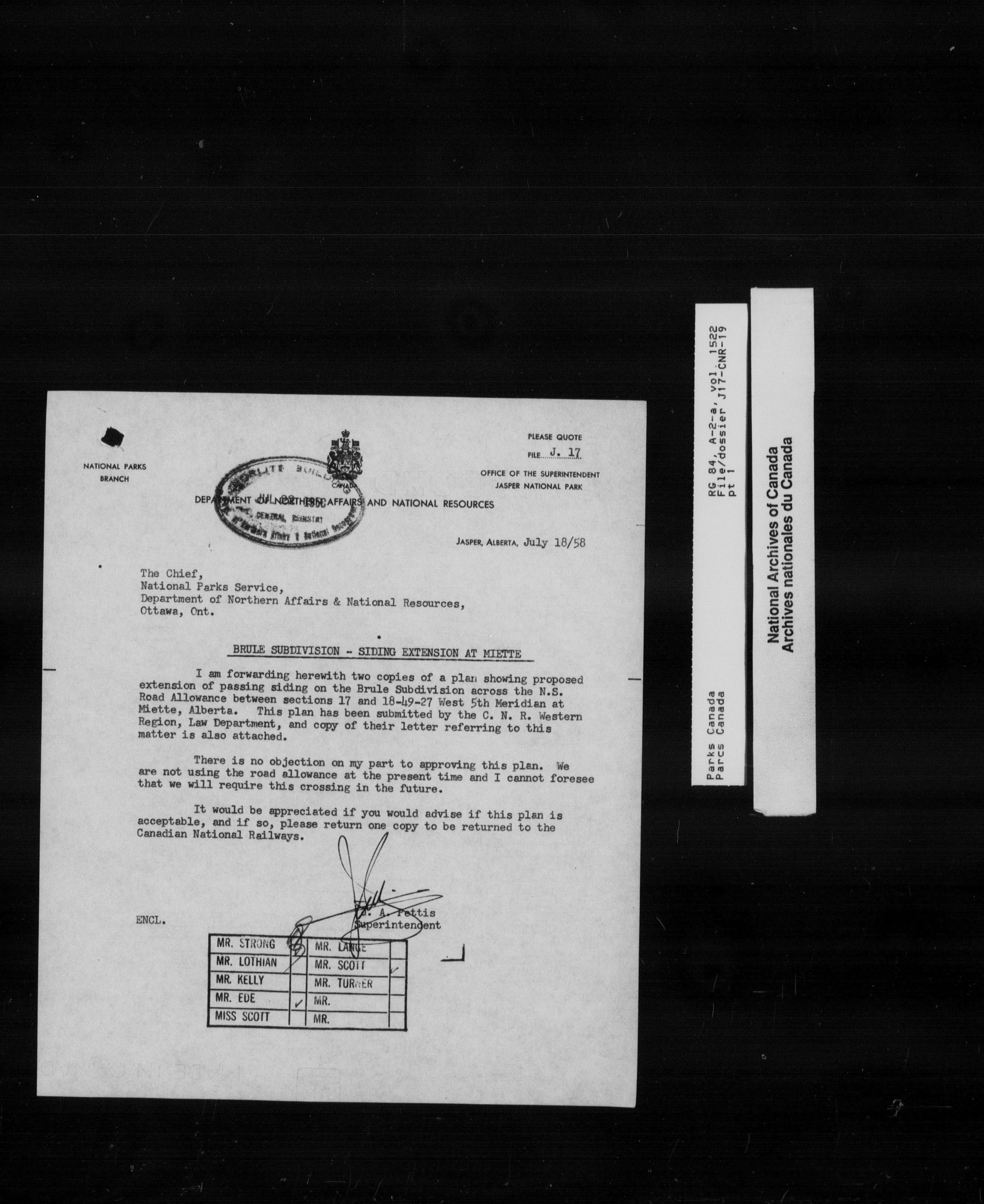 Department of Canadian Heritage, Canadian Parks Service : Park/subject classification system : T-9654