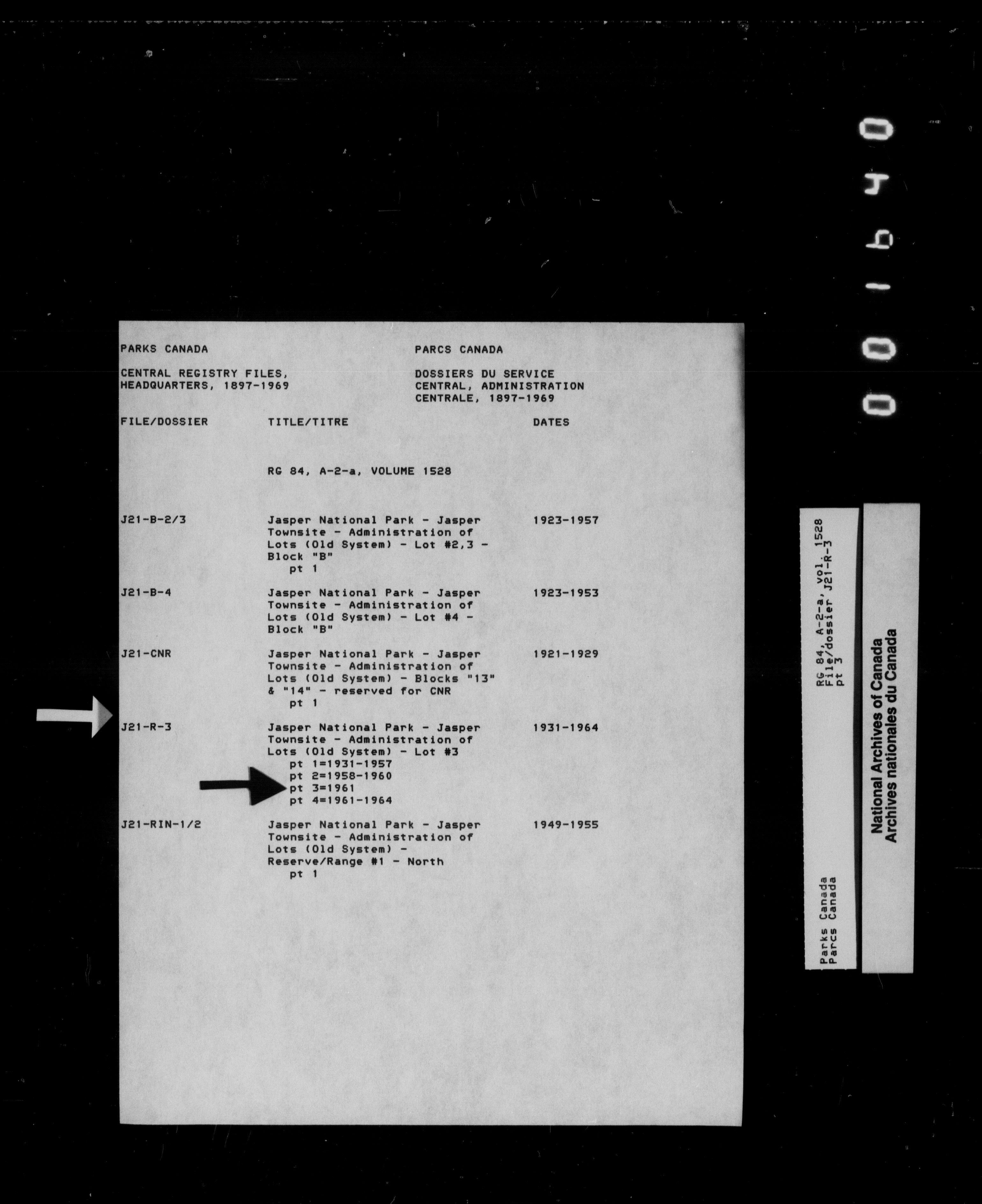 Department of Canadian Heritage, Canadian Parks Service : Park/subject classification system - 9659