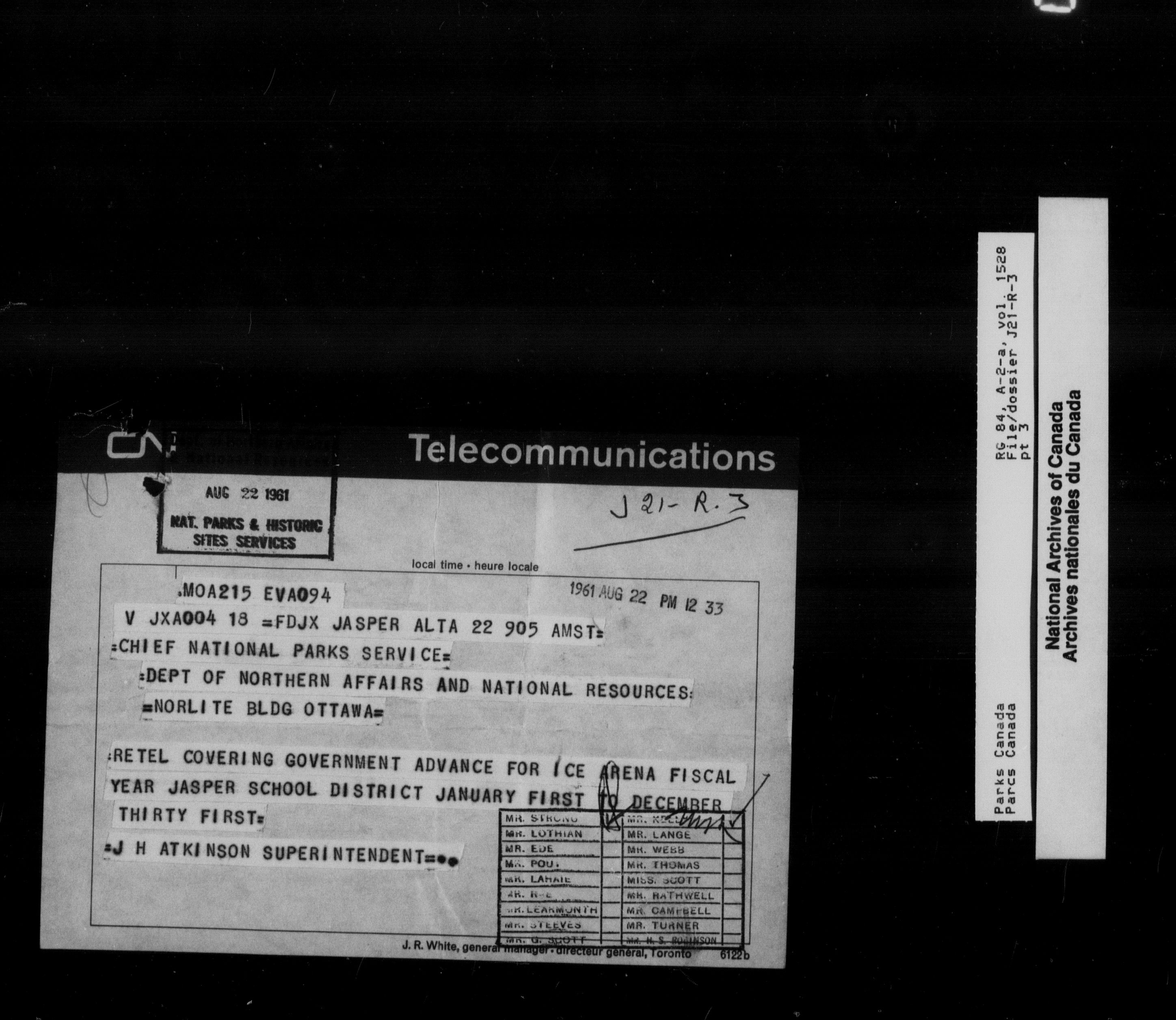 Department of Canadian Heritage, Canadian Parks Service : Park/subject classification system : T-9660