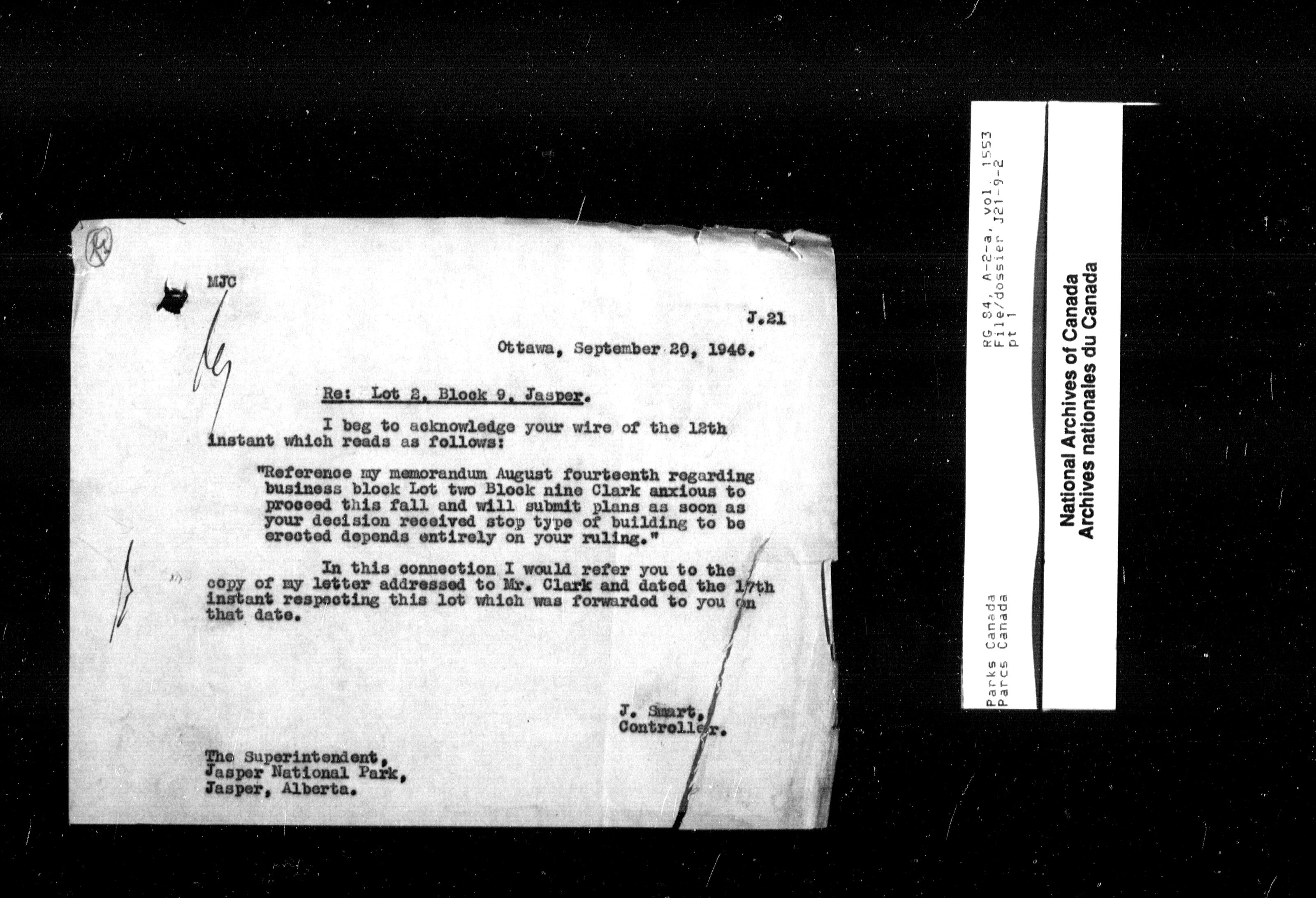 Volume 1552, File J21-8-10/11, pt. 3 (cont'd) to Vol. 1553, File J21-9-2, pt. 1