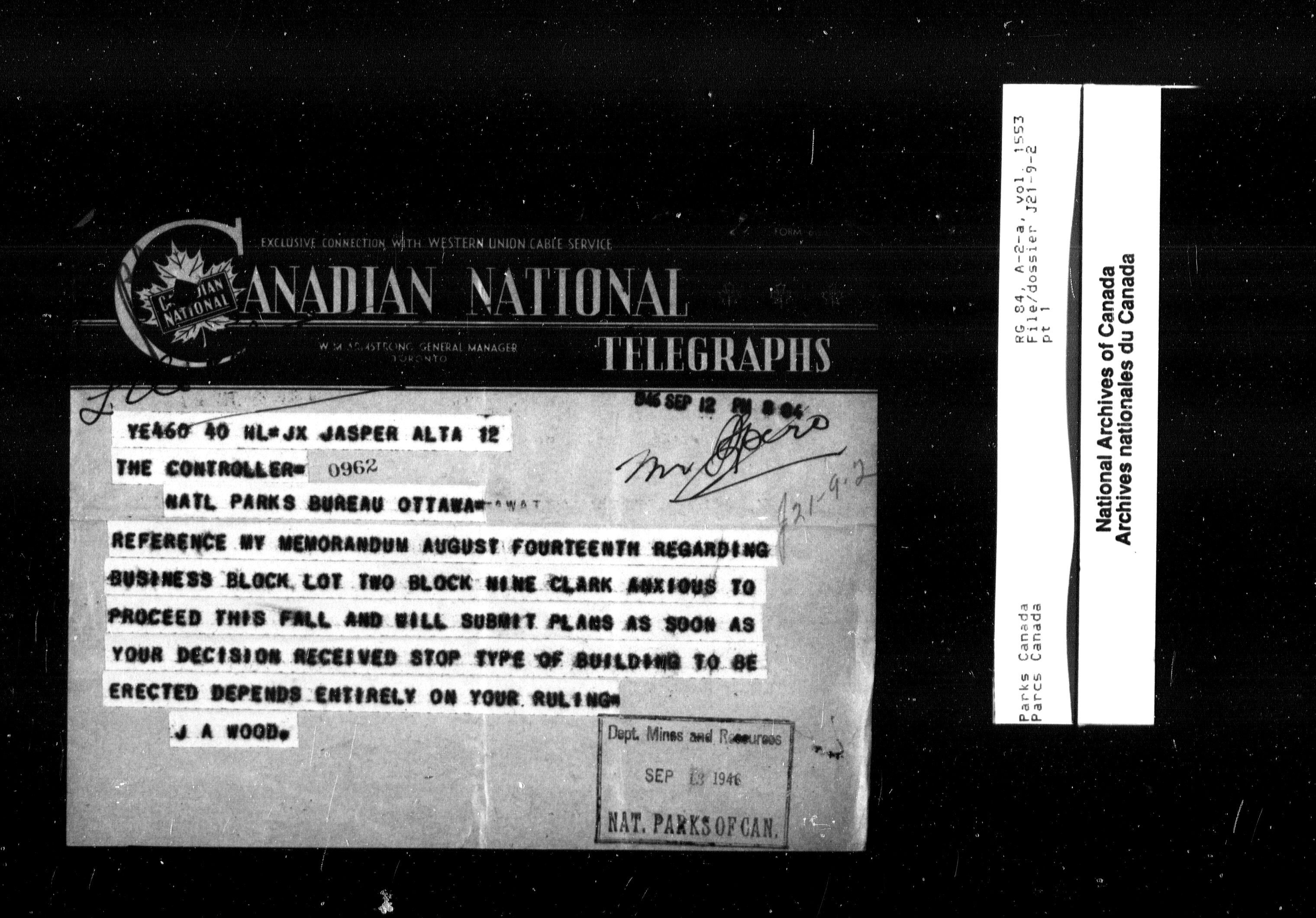 Volume 1552, File J21-8-10/11, pt. 3 (cont'd) to Vol. 1553, File J21-9-2, pt. 1