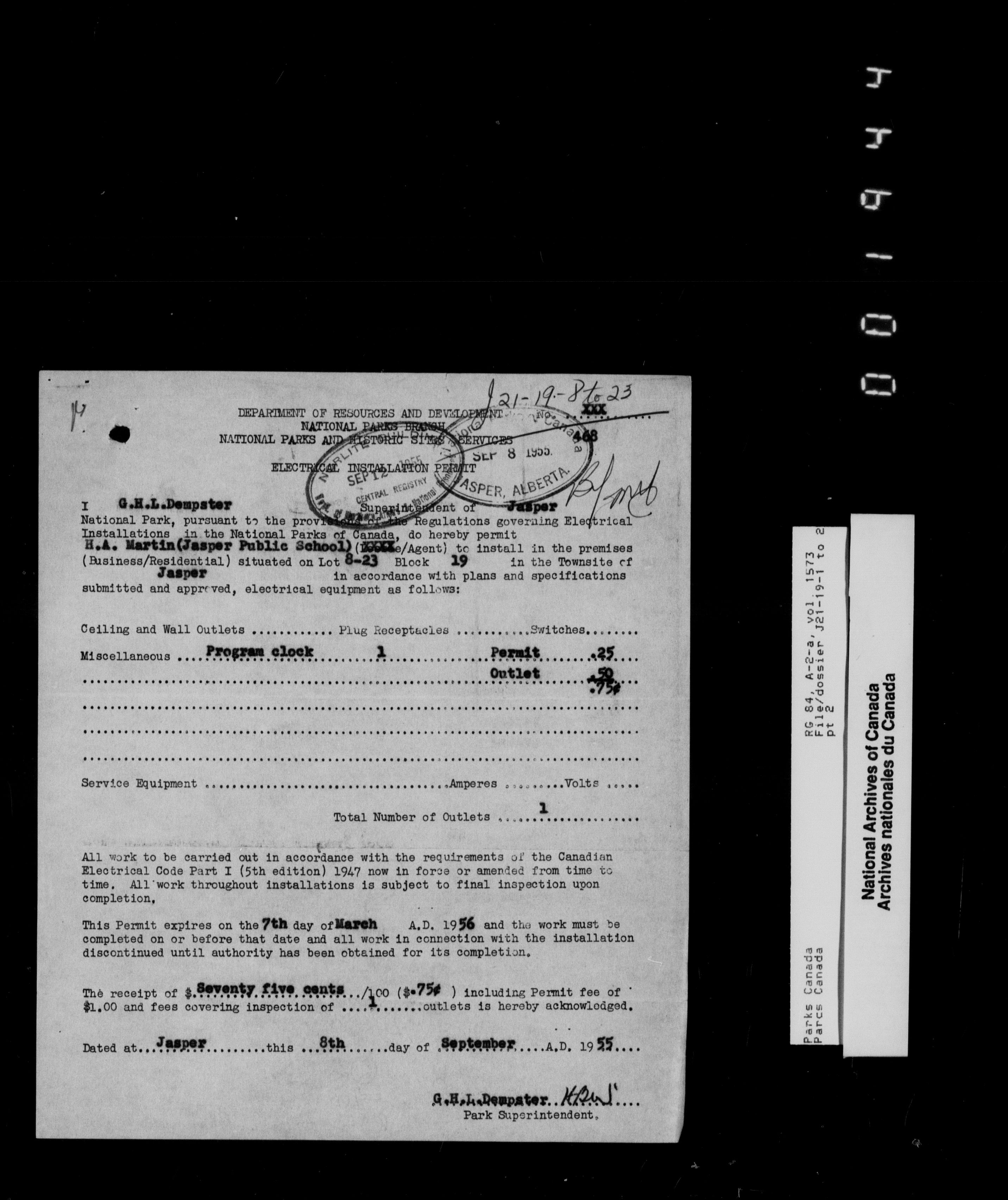 Department of Canadian Heritage, Canadian Parks Service : Park/subject classification system : T-9698
