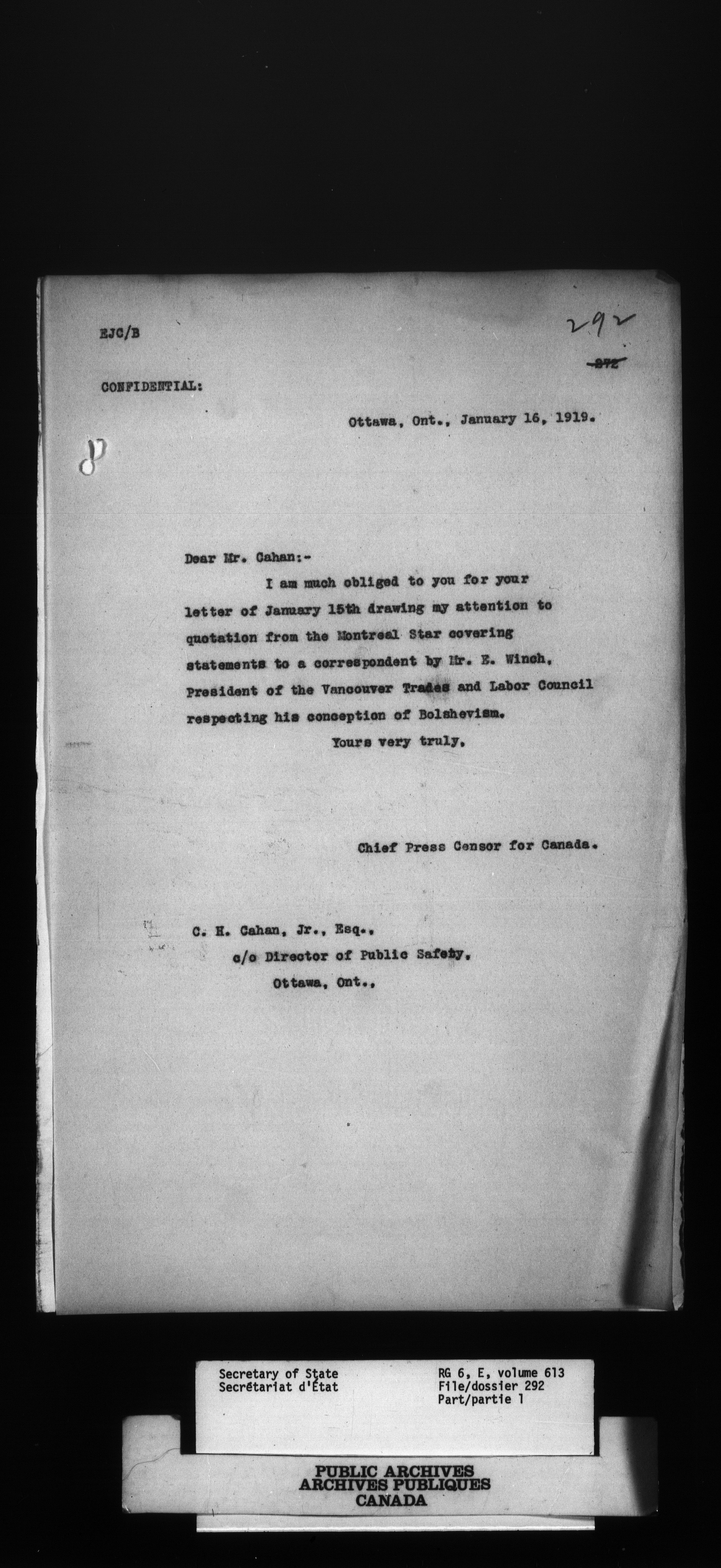 Secretary of State : Chief Press Censor, 1915-1920 - 97