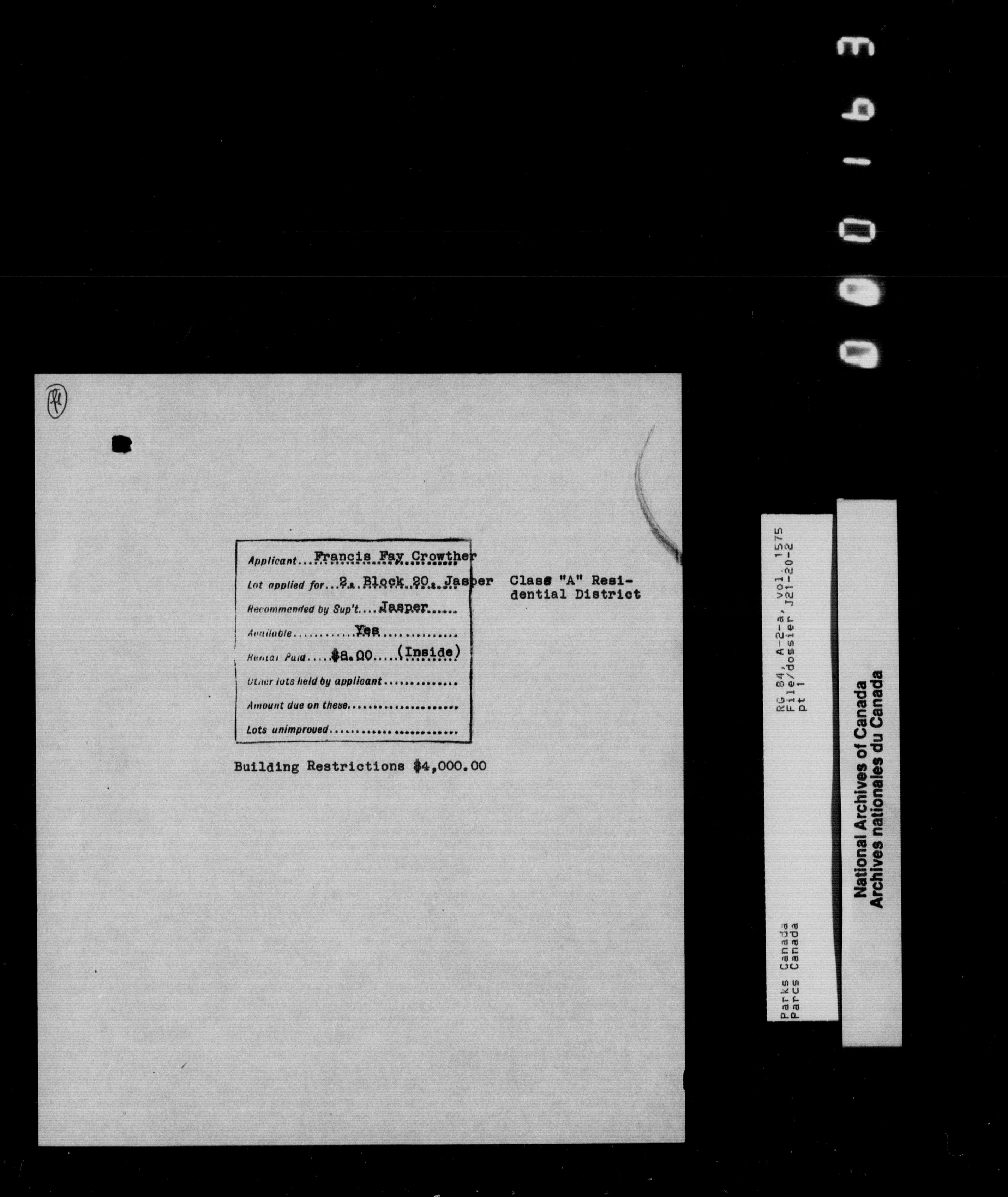 Department of Canadian Heritage, Canadian Parks Service : Park/subject classification system - 9700