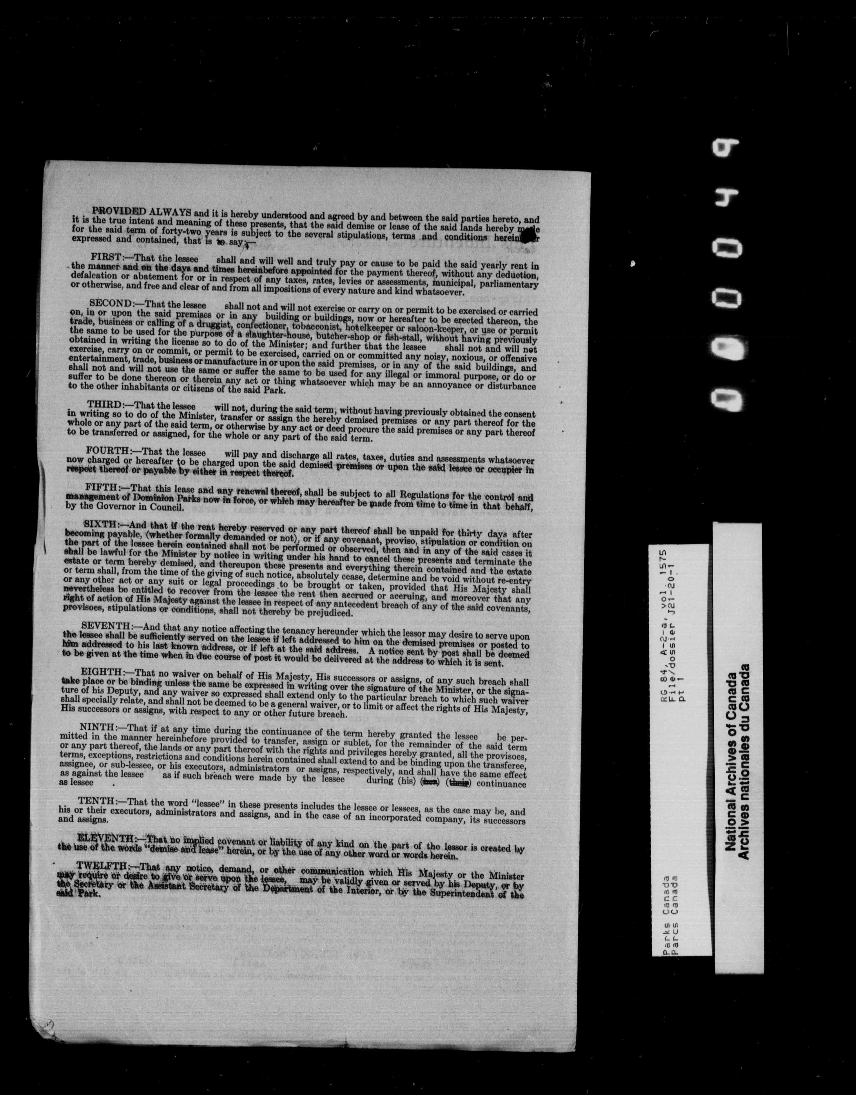 Department of Canadian Heritage, Canadian Parks Service : Park/subject classification system - 9700