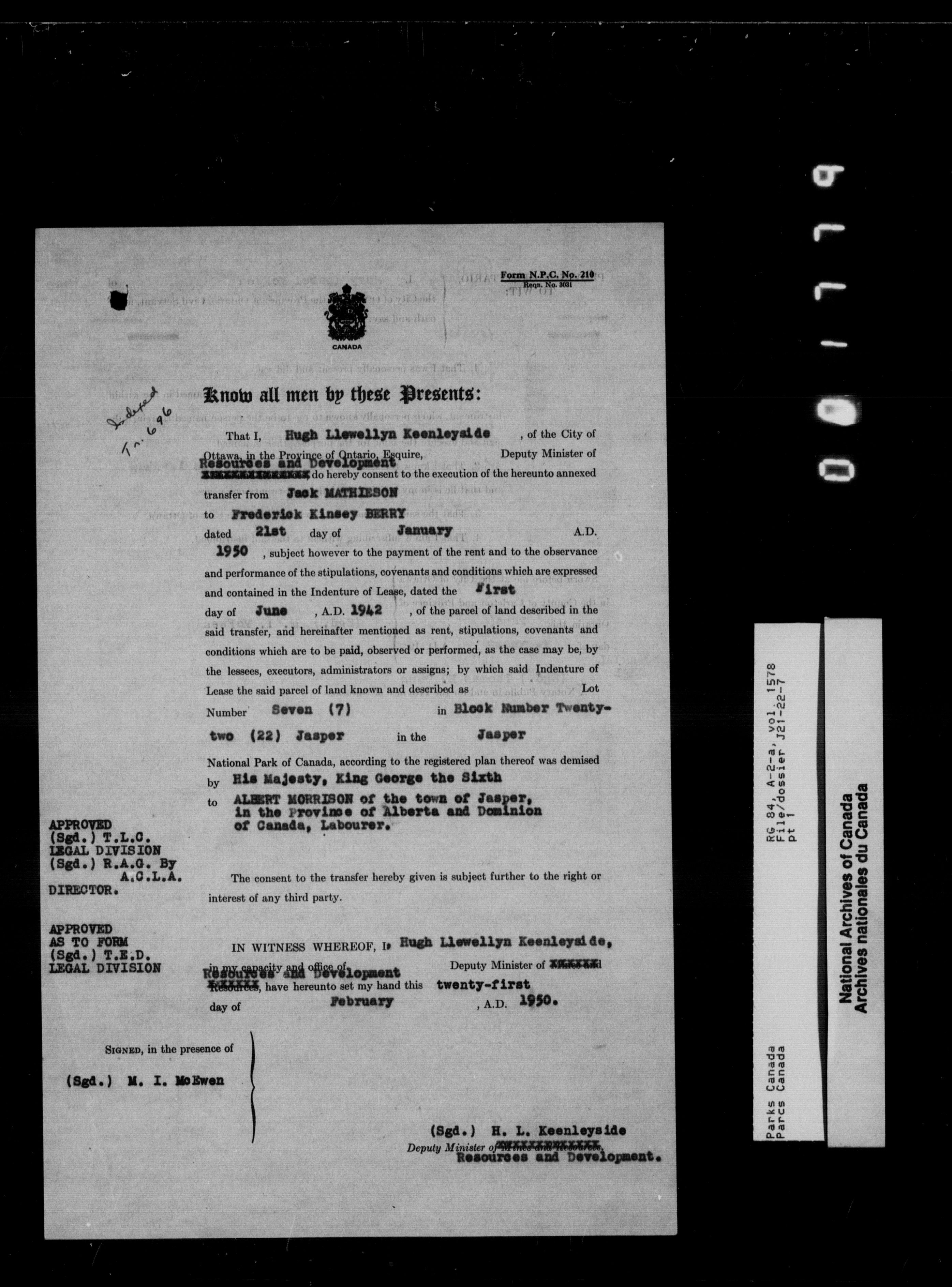 Department of Canadian Heritage, Canadian Parks Service : Park/subject classification system - 9701
