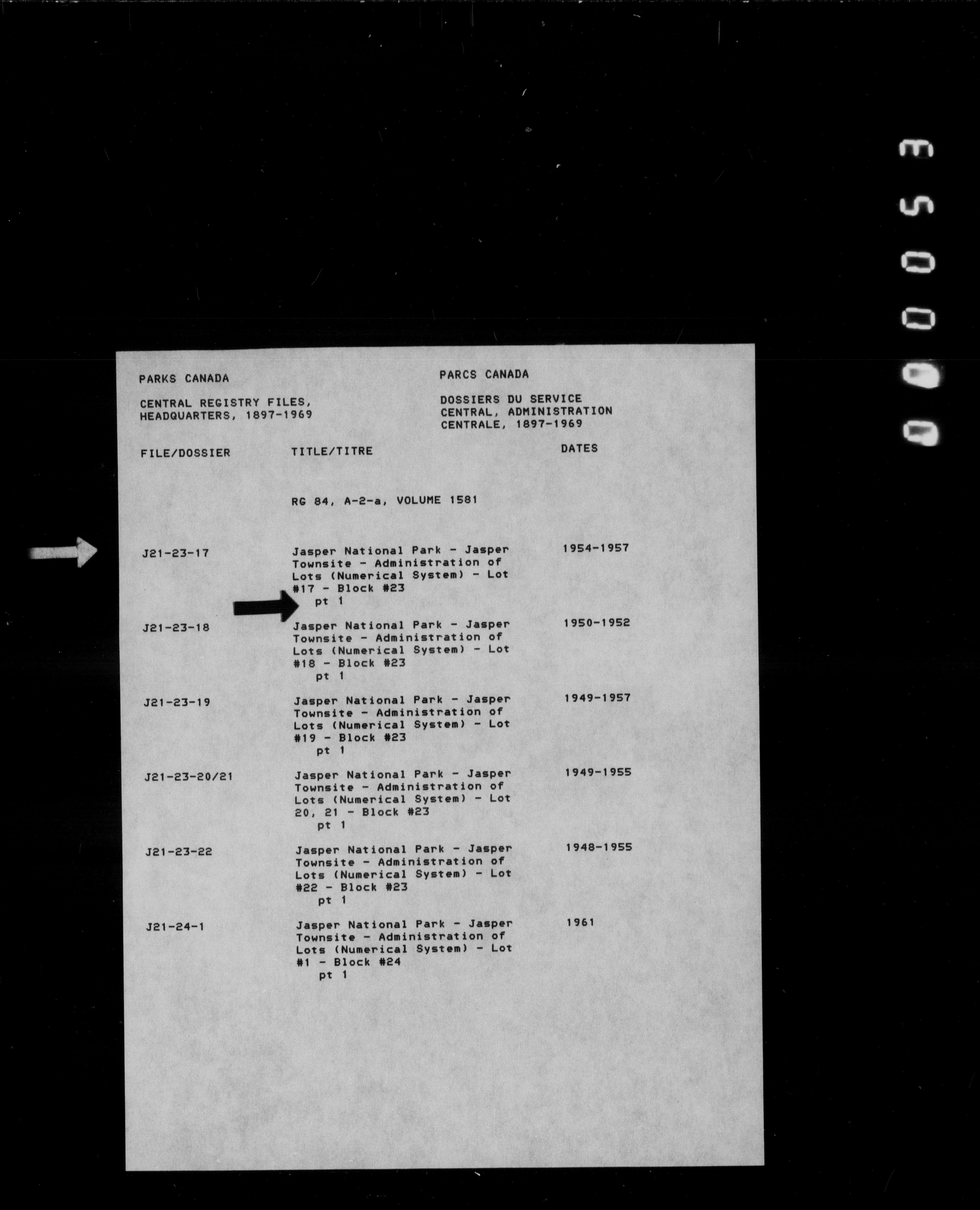 Department of Canadian Heritage, Canadian Parks Service : Park/subject classification system - 9704
