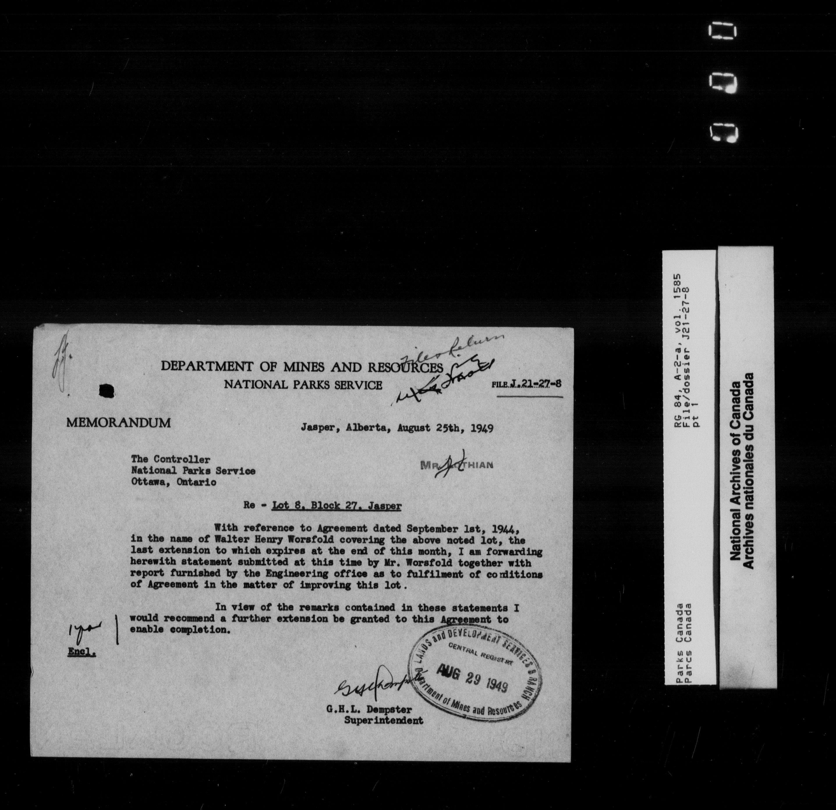 Department of Canadian Heritage, Canadian Parks Service : Park/subject classification system - 9707