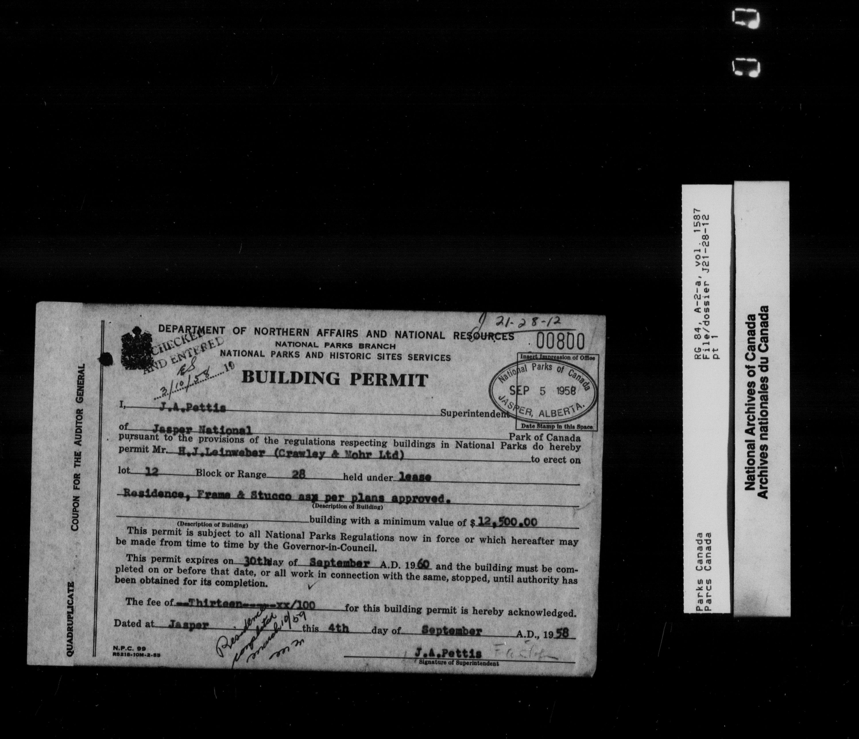 Department of Canadian Heritage, Canadian Parks Service : Park/subject classification system - 9708