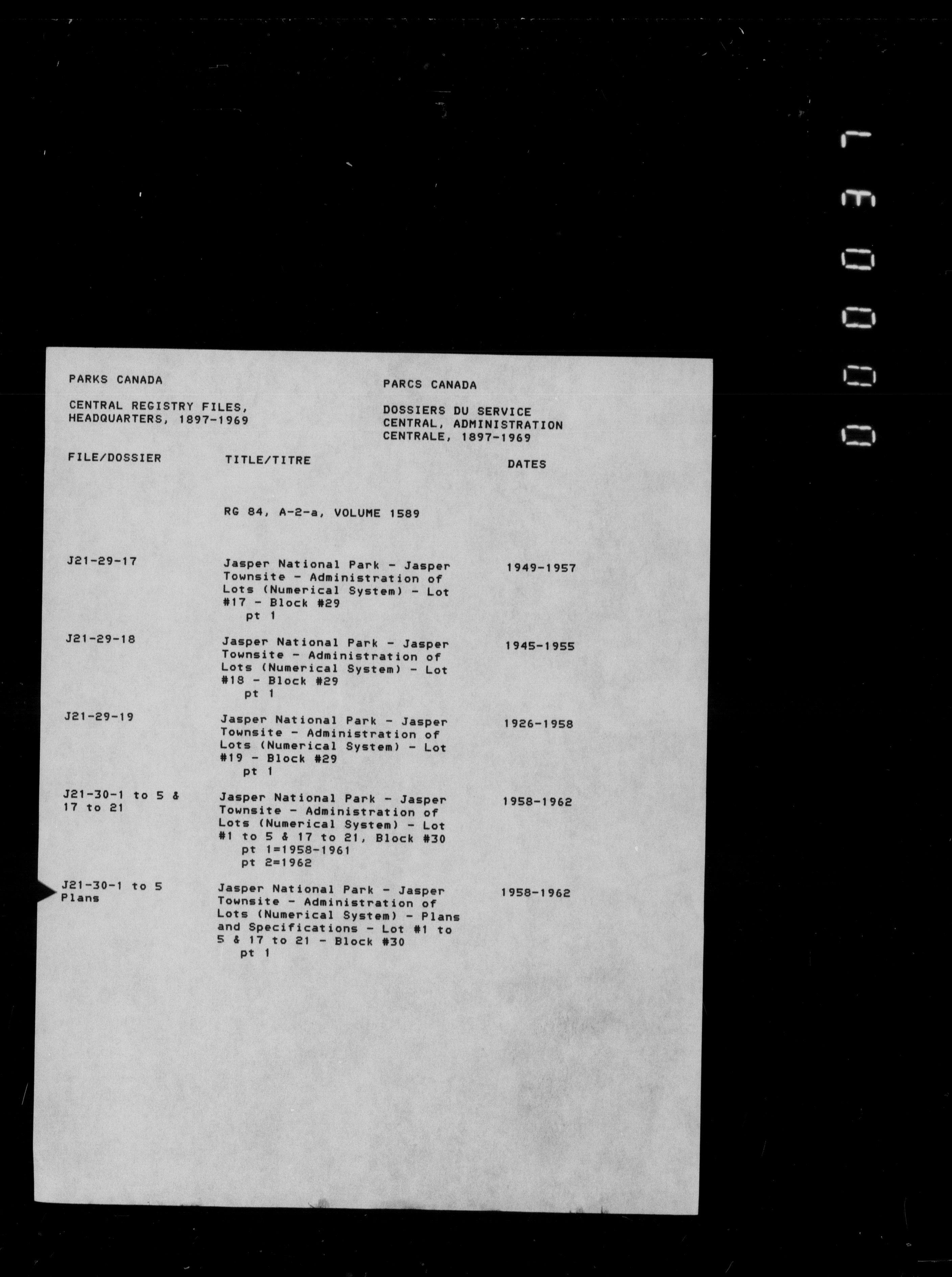 - Department of Canadian Heritage, Canadian Parks Service : Park/subject classification system - 9710