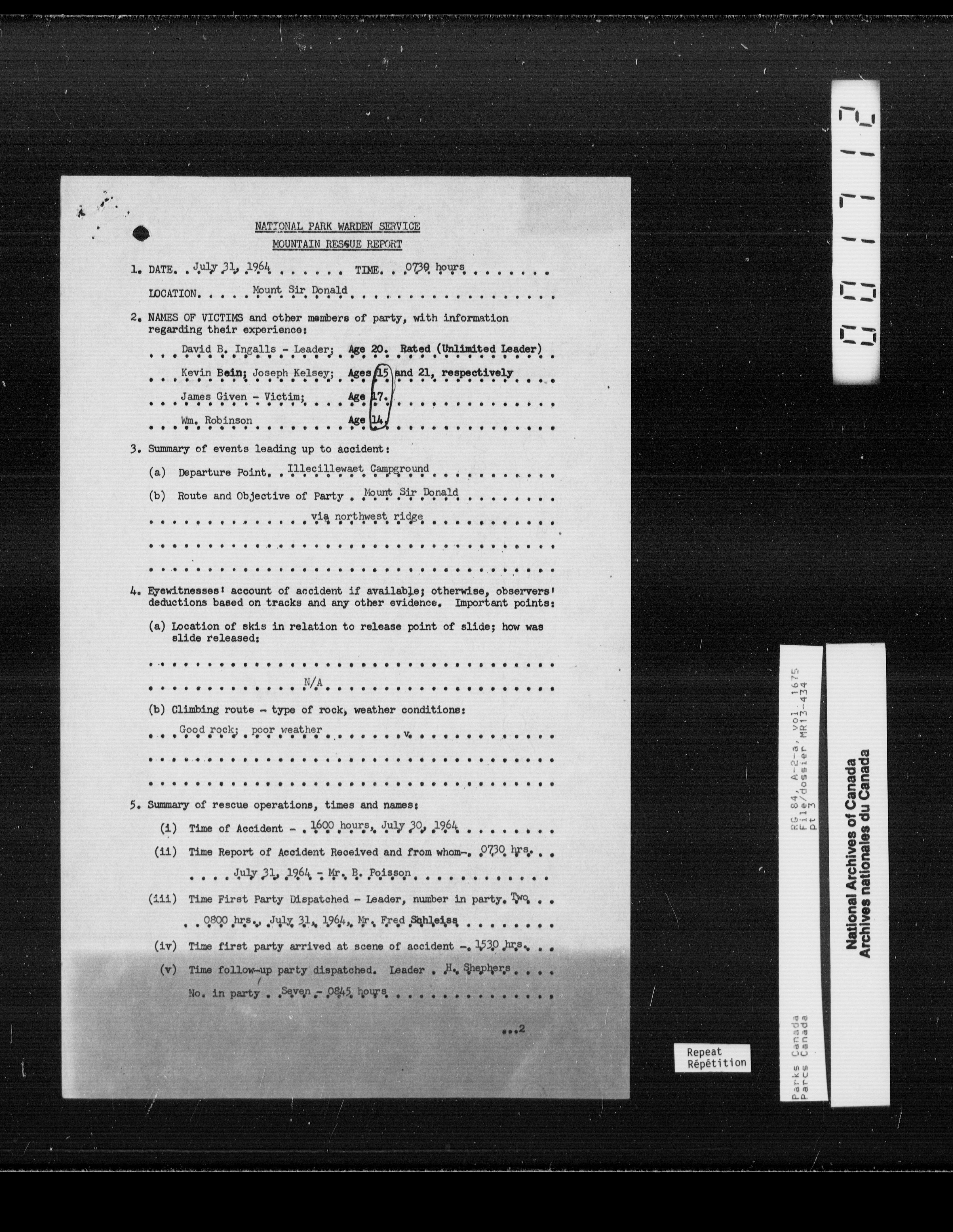 Department of Canadian Heritage, Canadian Parks Service : Park/subject classification system : T-9737