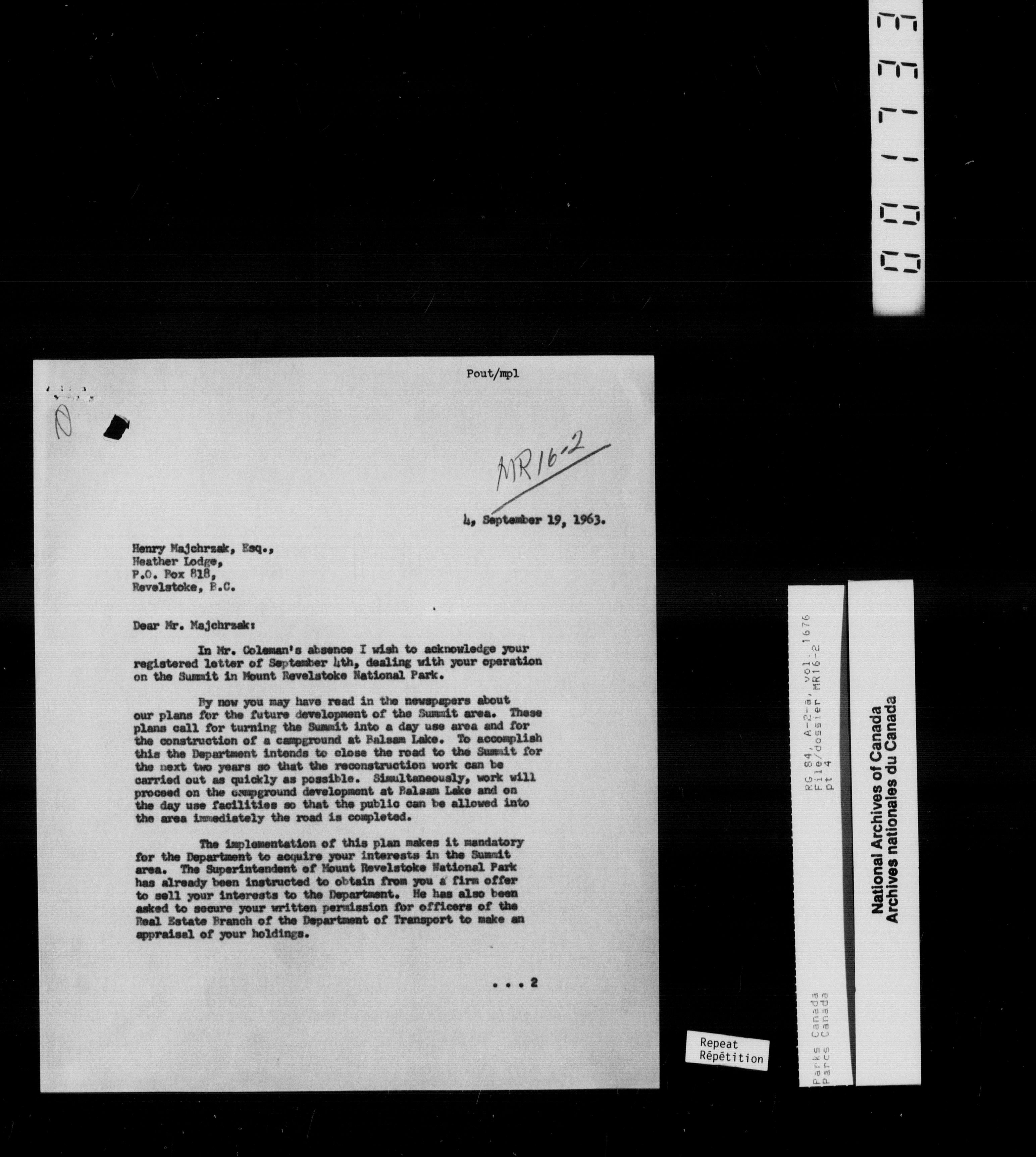 Department of Canadian Heritage, Canadian Parks Service : Park/subject classification system - 9738