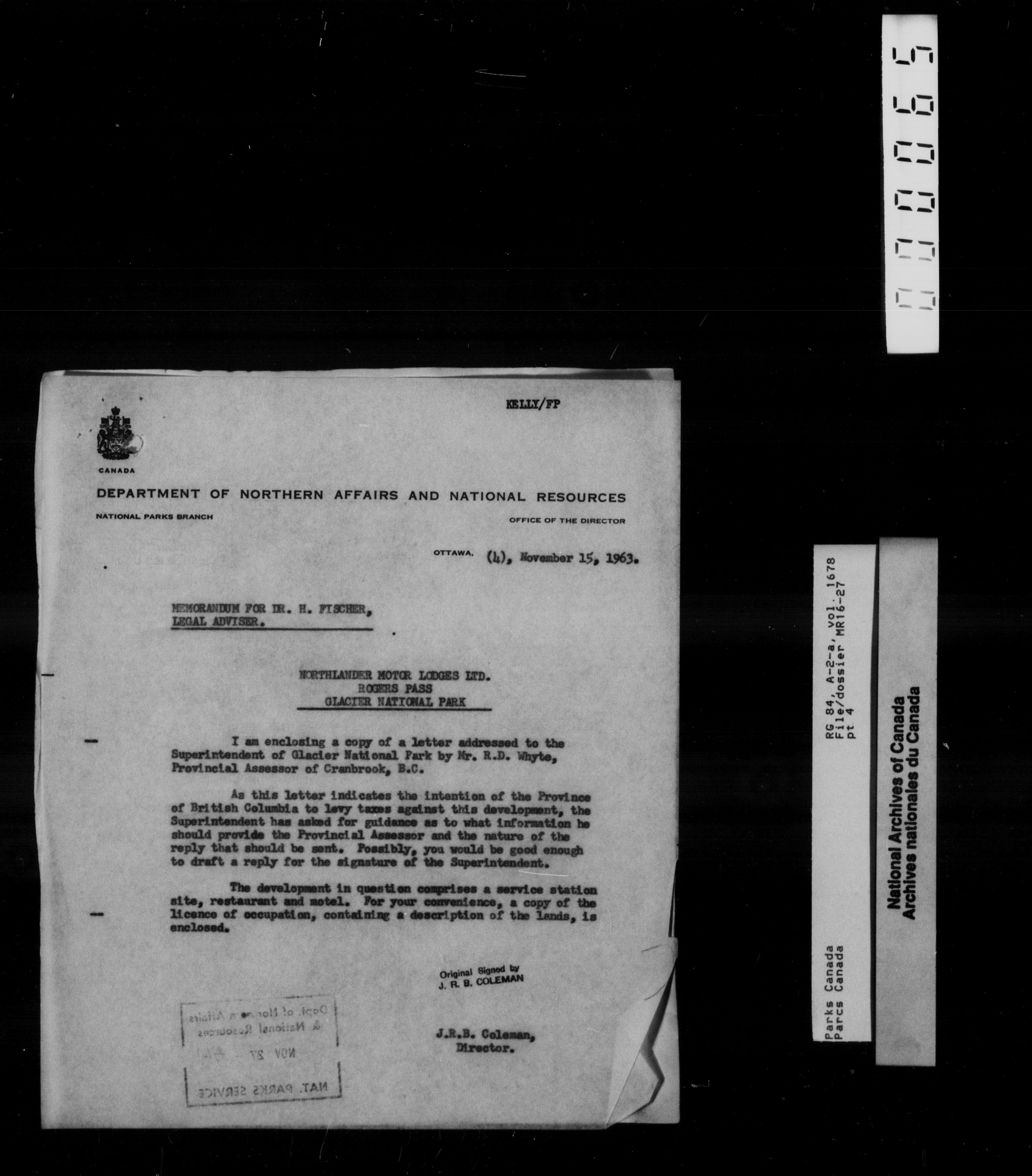 Department of Canadian Heritage, Canadian Parks Service : Park/subject classification system - 9741