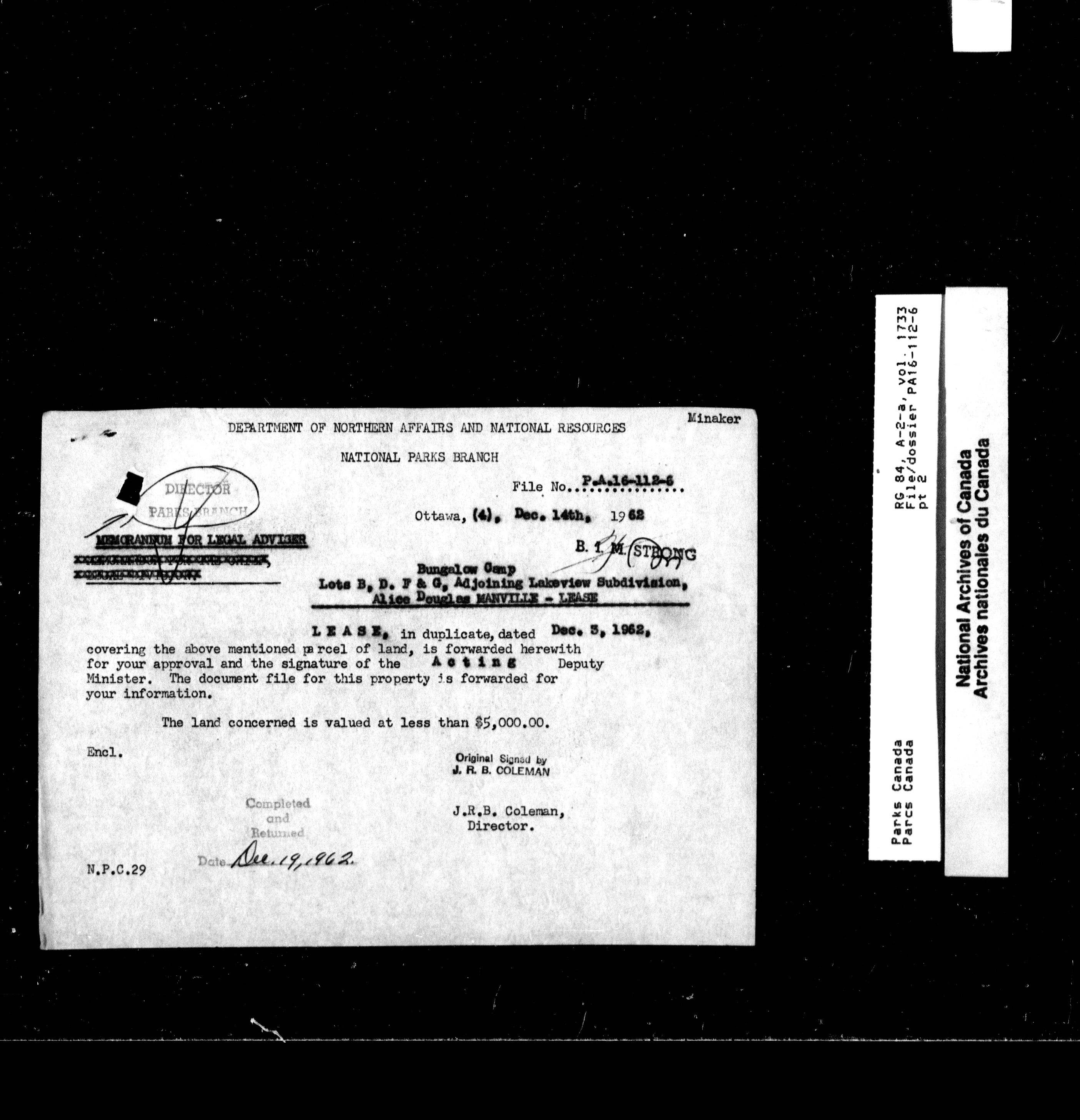 Department of Canadian Heritage, Canadian Parks Service : Park/subject classification system : T-9753