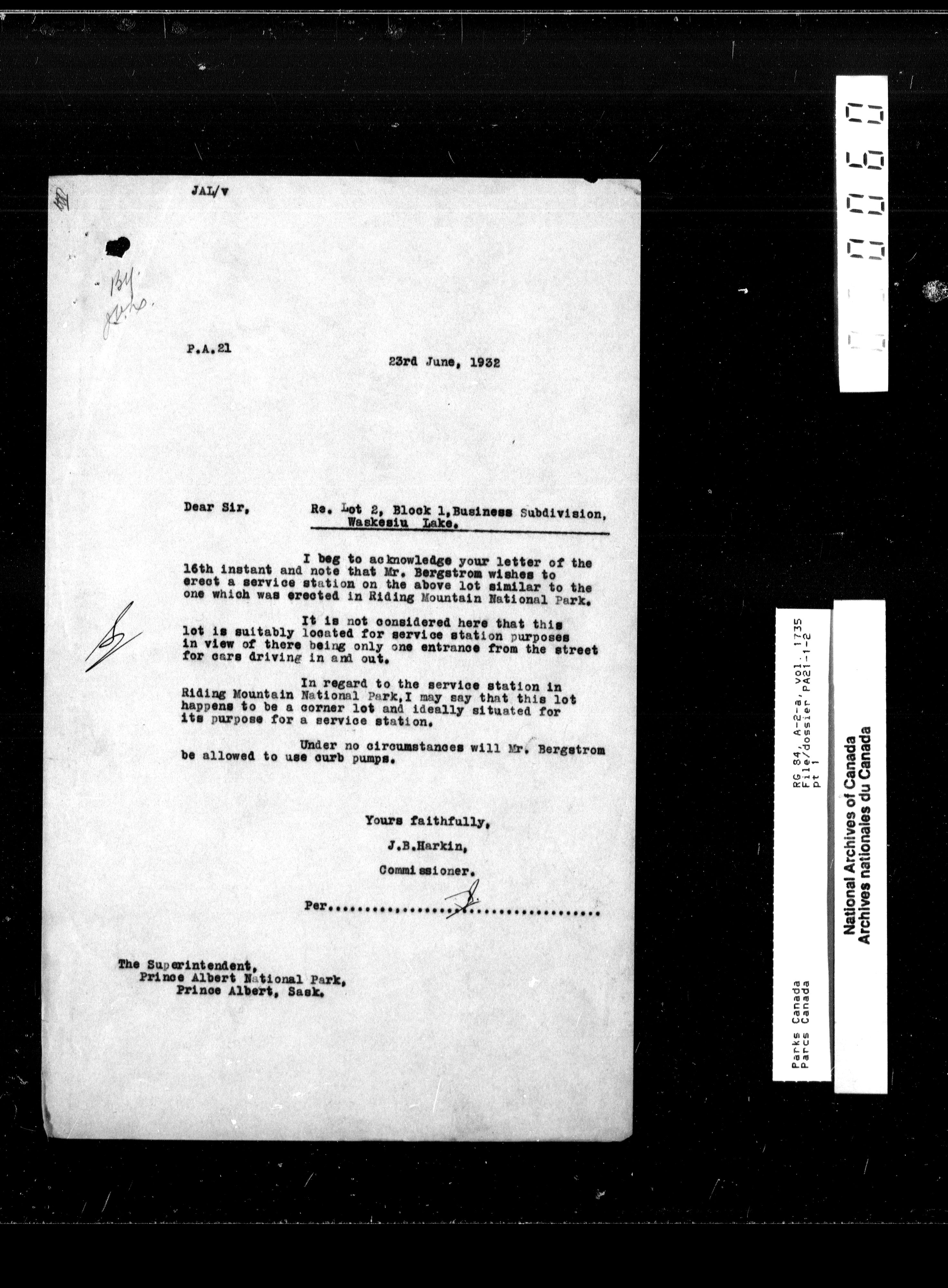 Department of Canadian Heritage, Canadian Parks Service : Park/subject classification system : T-9755