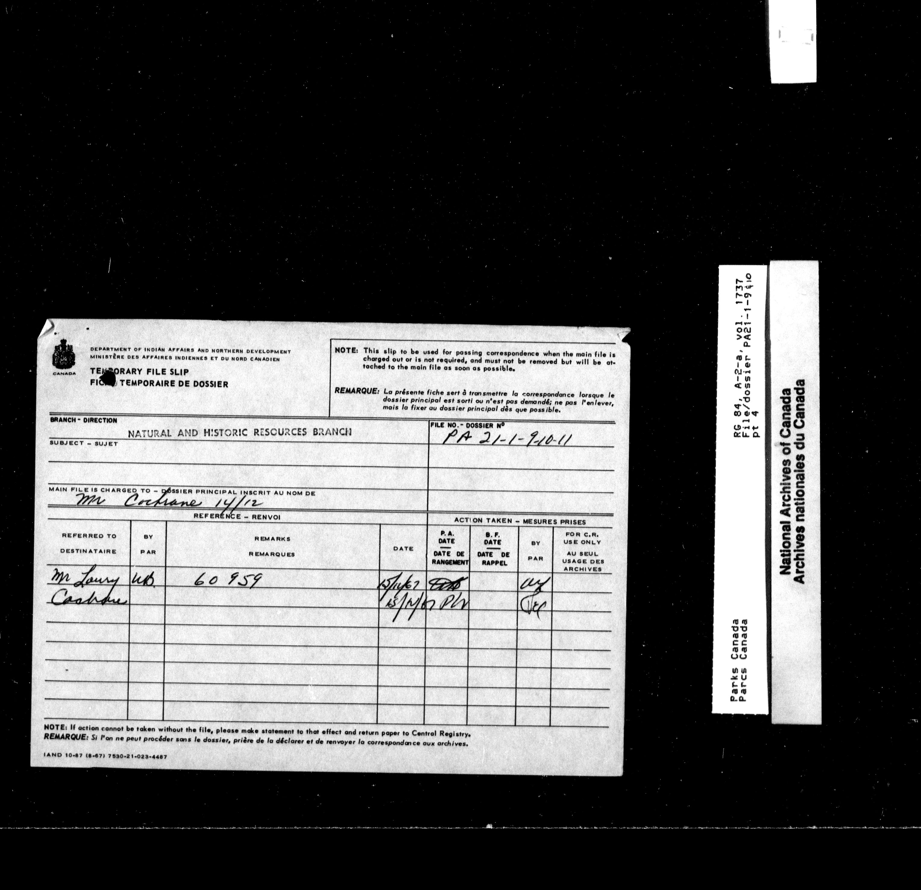 Department of Canadian Heritage, Canadian Parks Service : Park/subject classification system - 9756