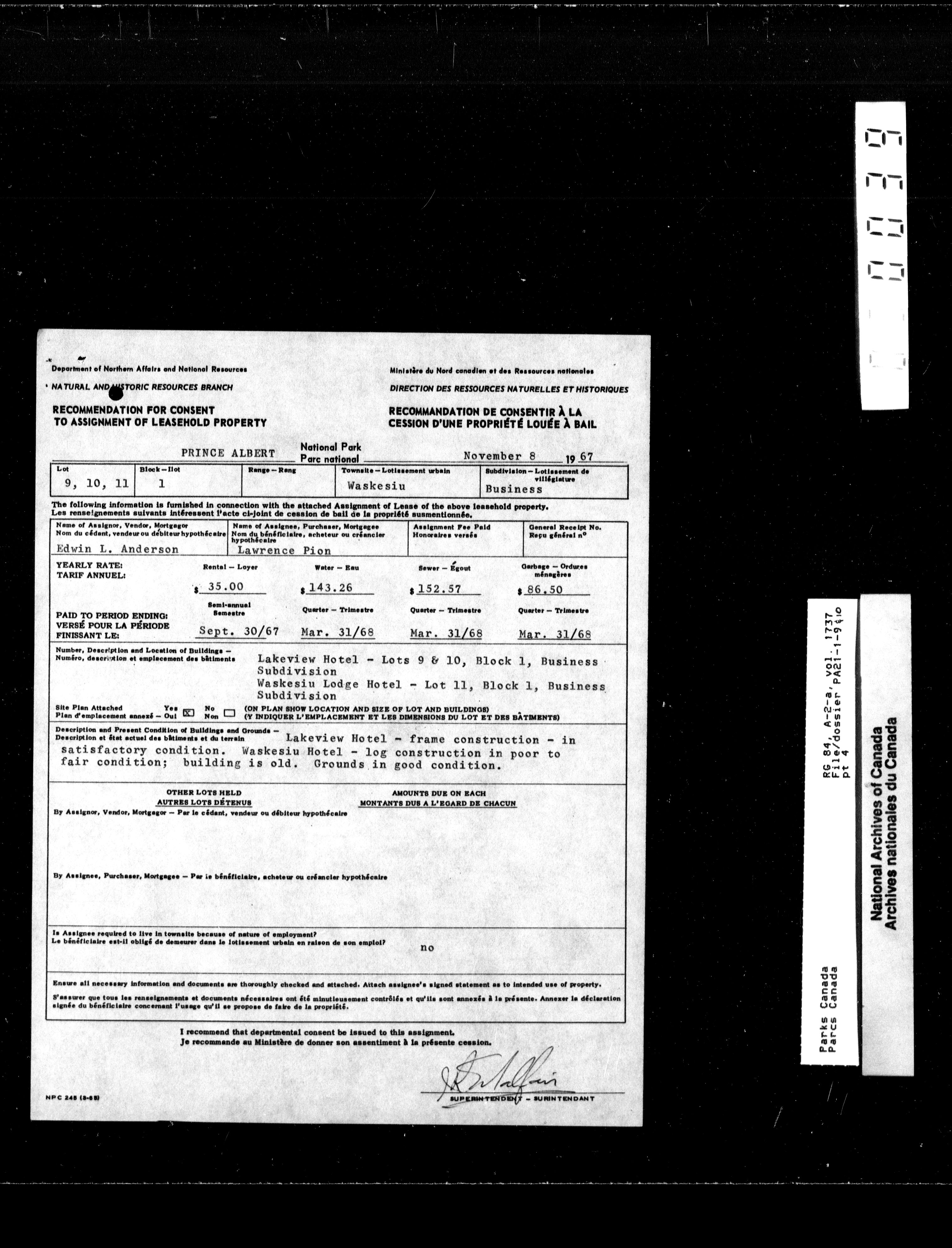 Department of Canadian Heritage, Canadian Parks Service : Park/subject classification system - 9756