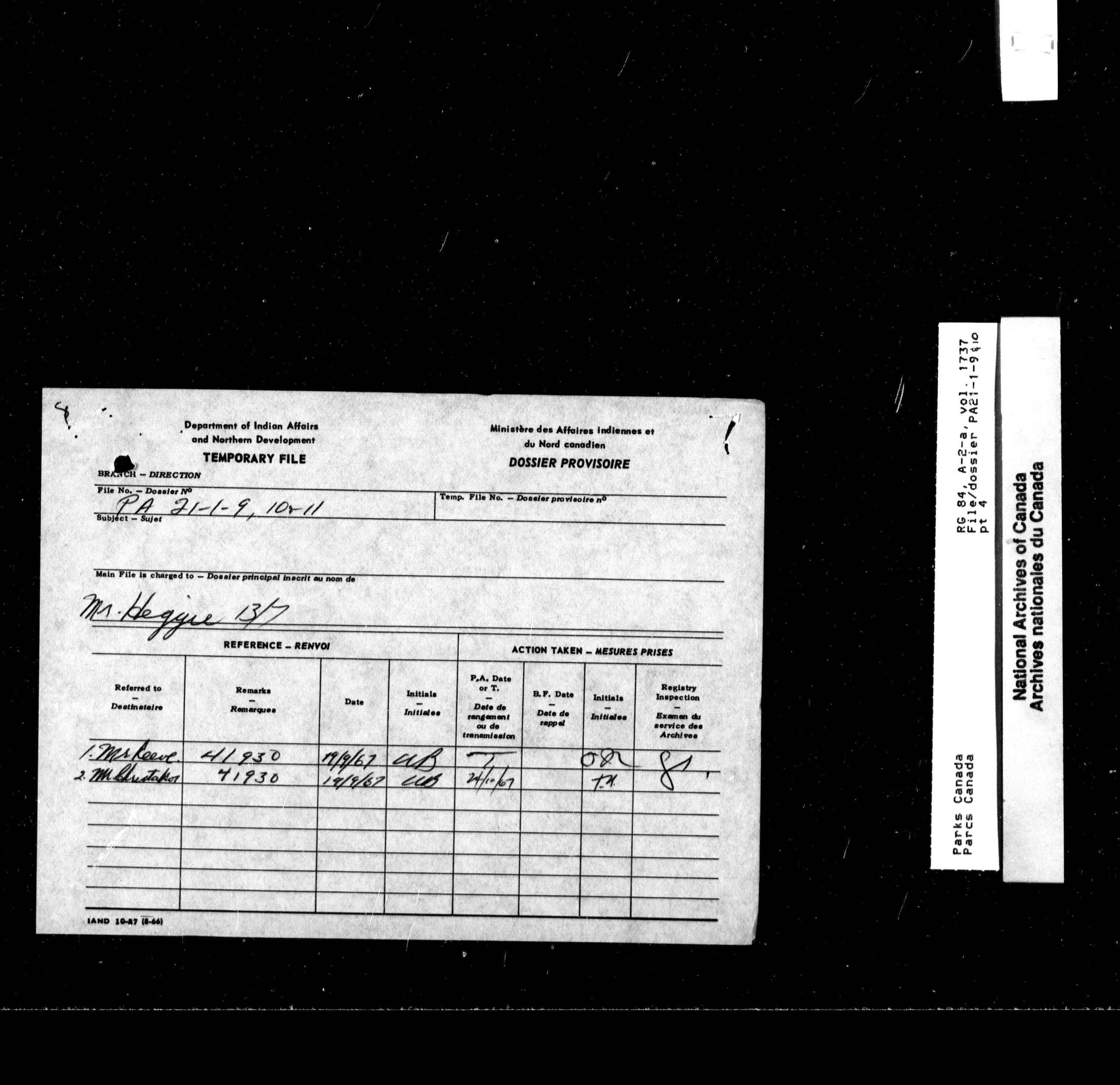 Department of Canadian Heritage, Canadian Parks Service : Park/subject classification system - 9756