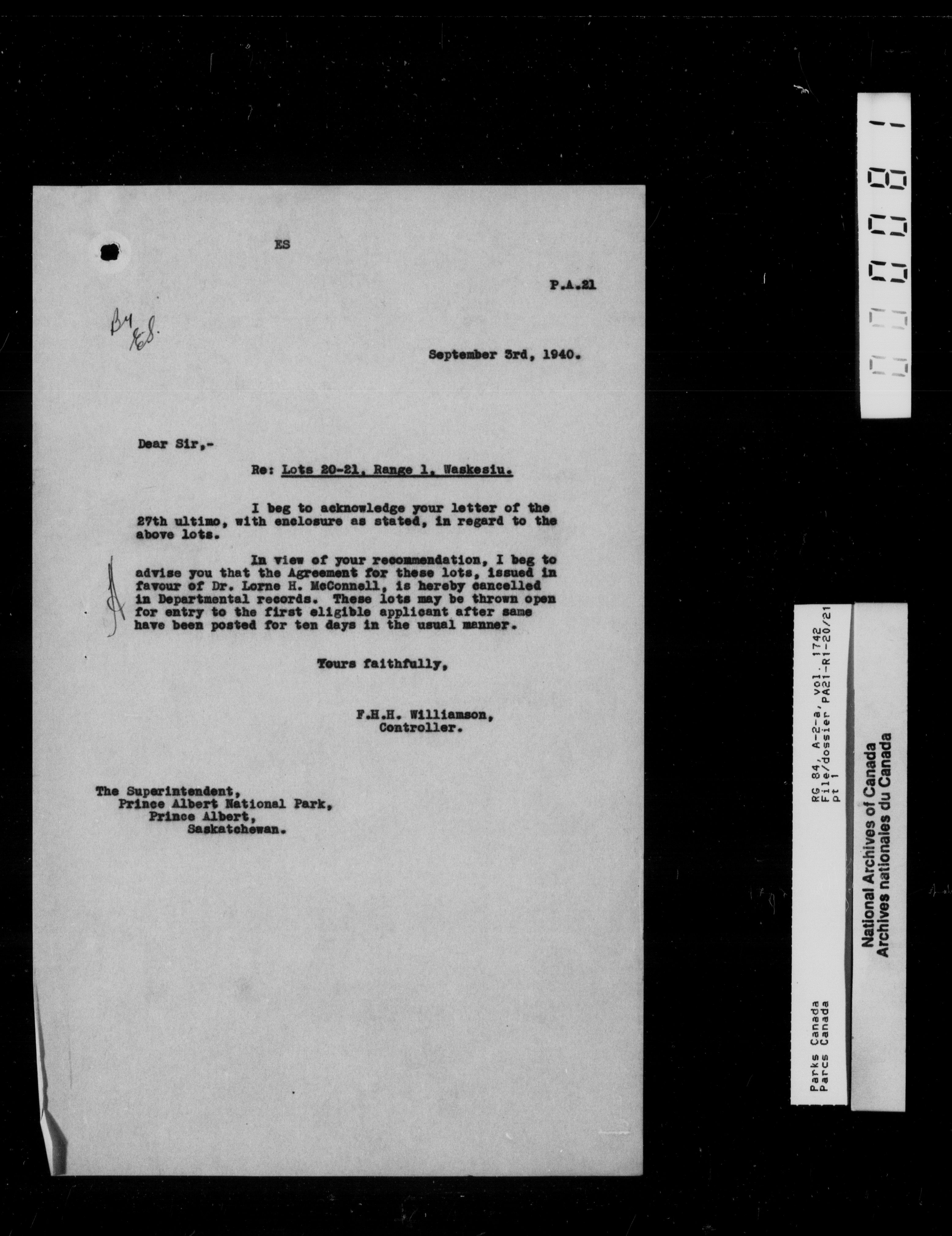 Department of Canadian Heritage, Canadian Parks Service : Park/subject classification system - 9760