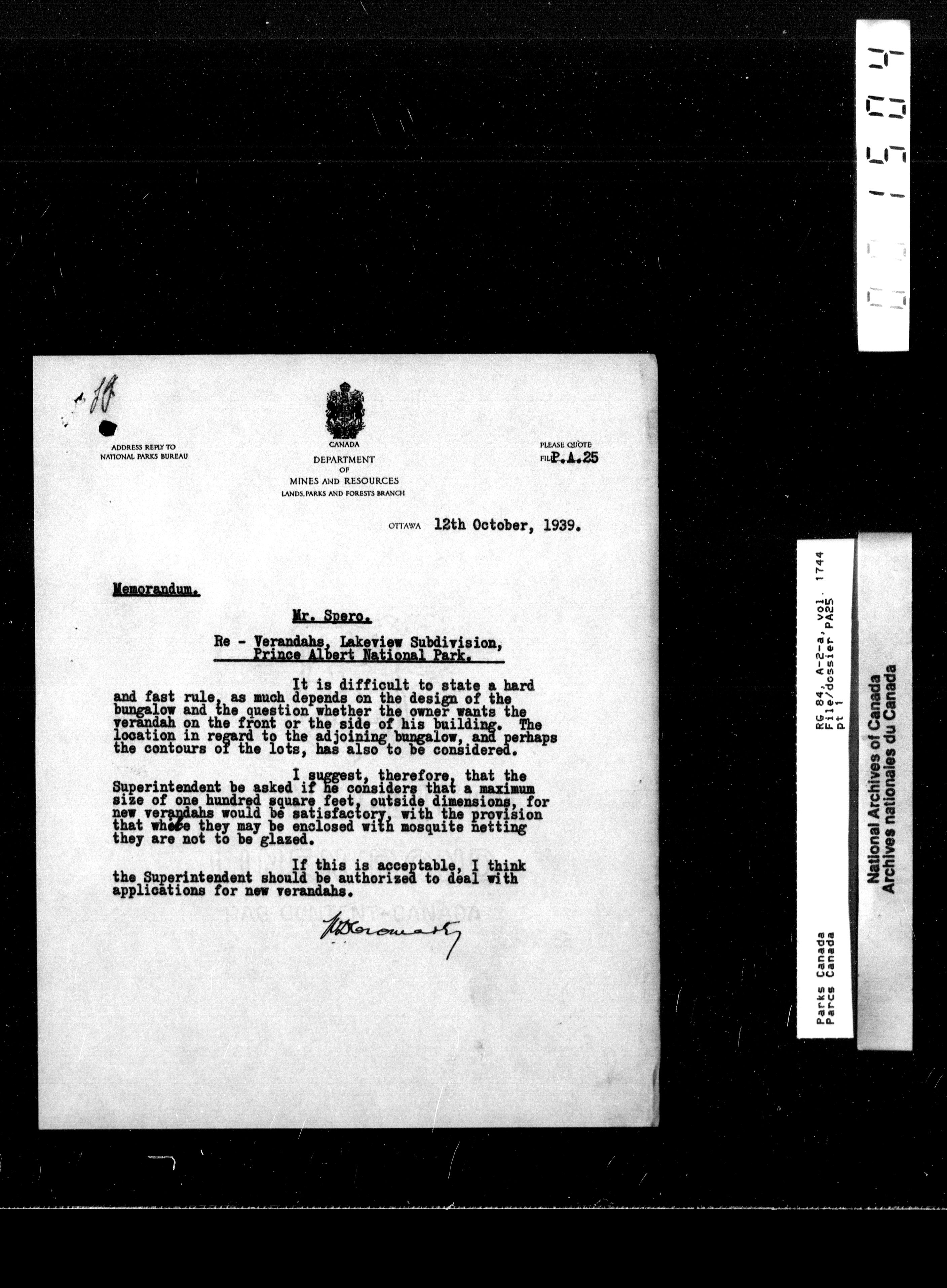 Department of Canadian Heritage, Canadian Parks Service : Park/subject classification system : T-9761