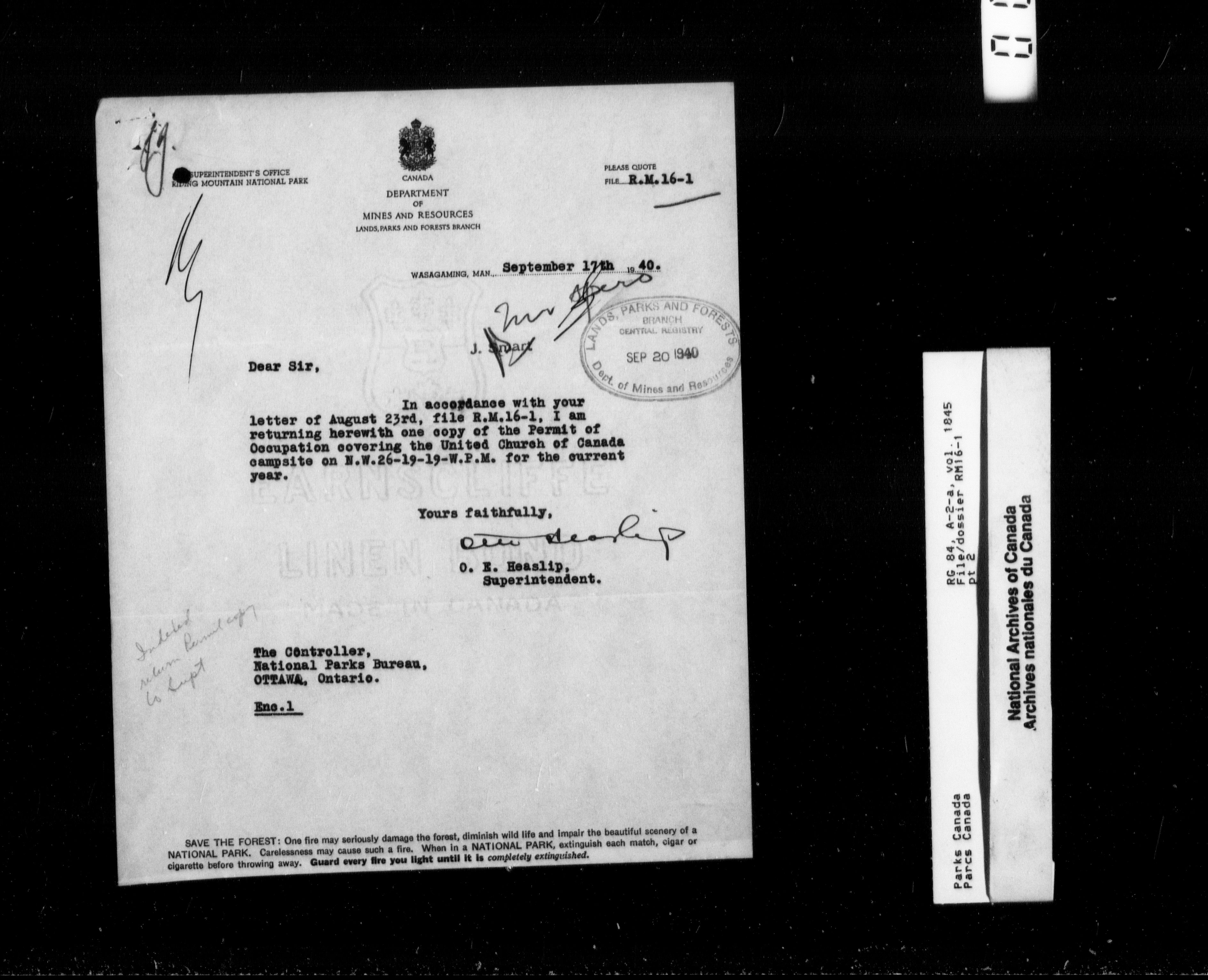 Department of Canadian Heritage, Canadian Parks Service : Park/subject classification system - 9769