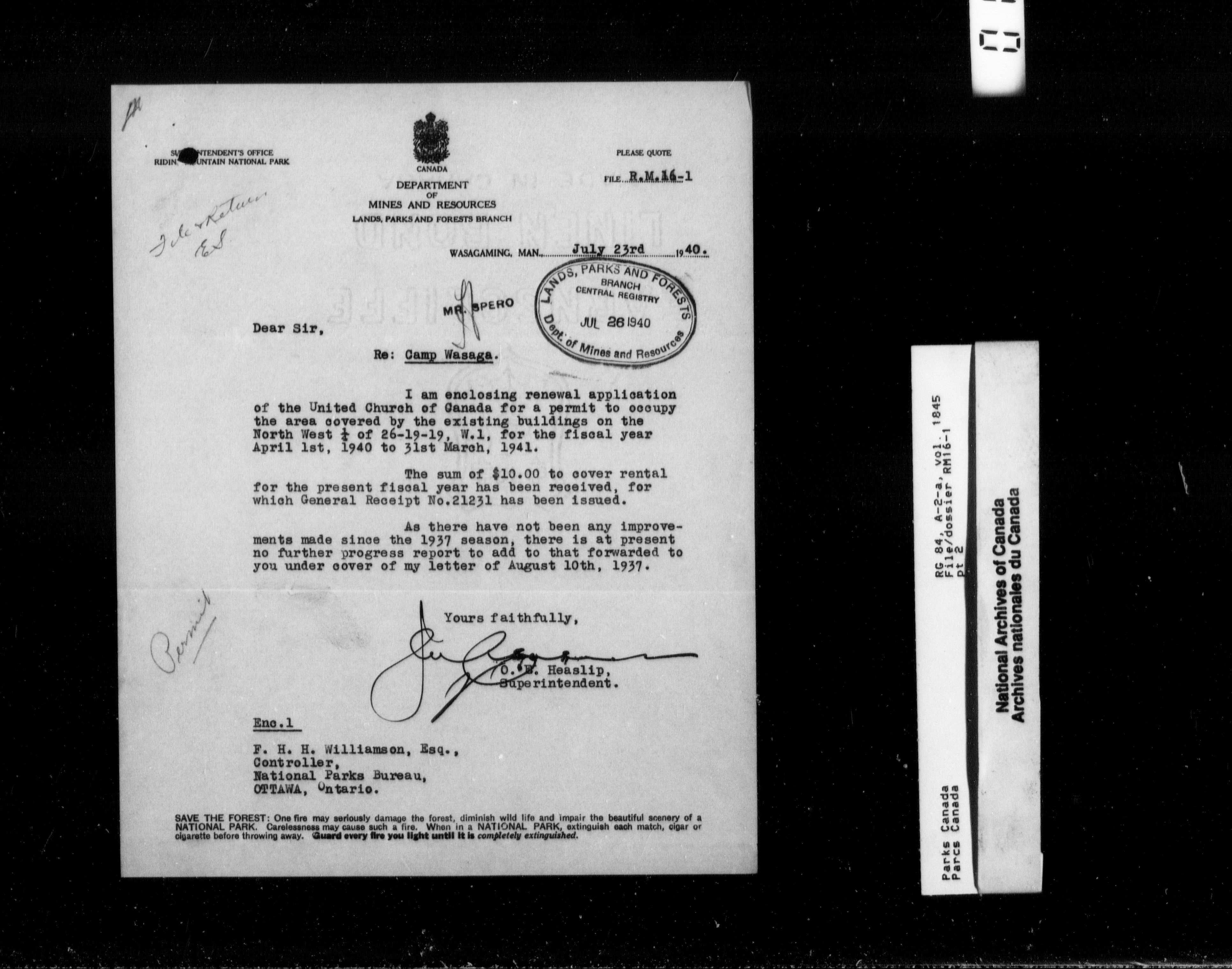 Department of Canadian Heritage, Canadian Parks Service : Park/subject classification system - 9769