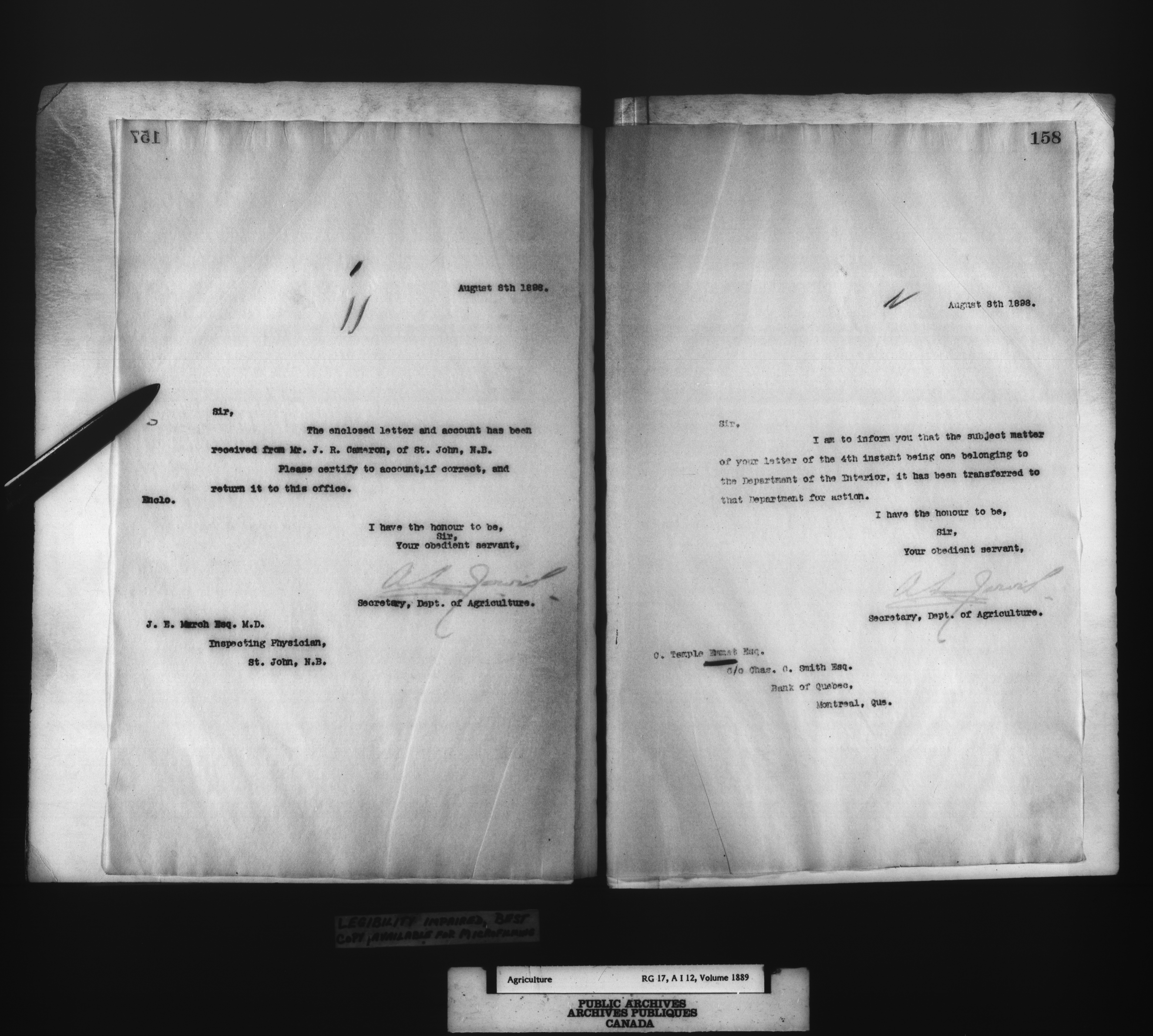 Department of Agriculture : Secretary and Assistant Deputy Minister's letterbooks, 1881-1916 - 977