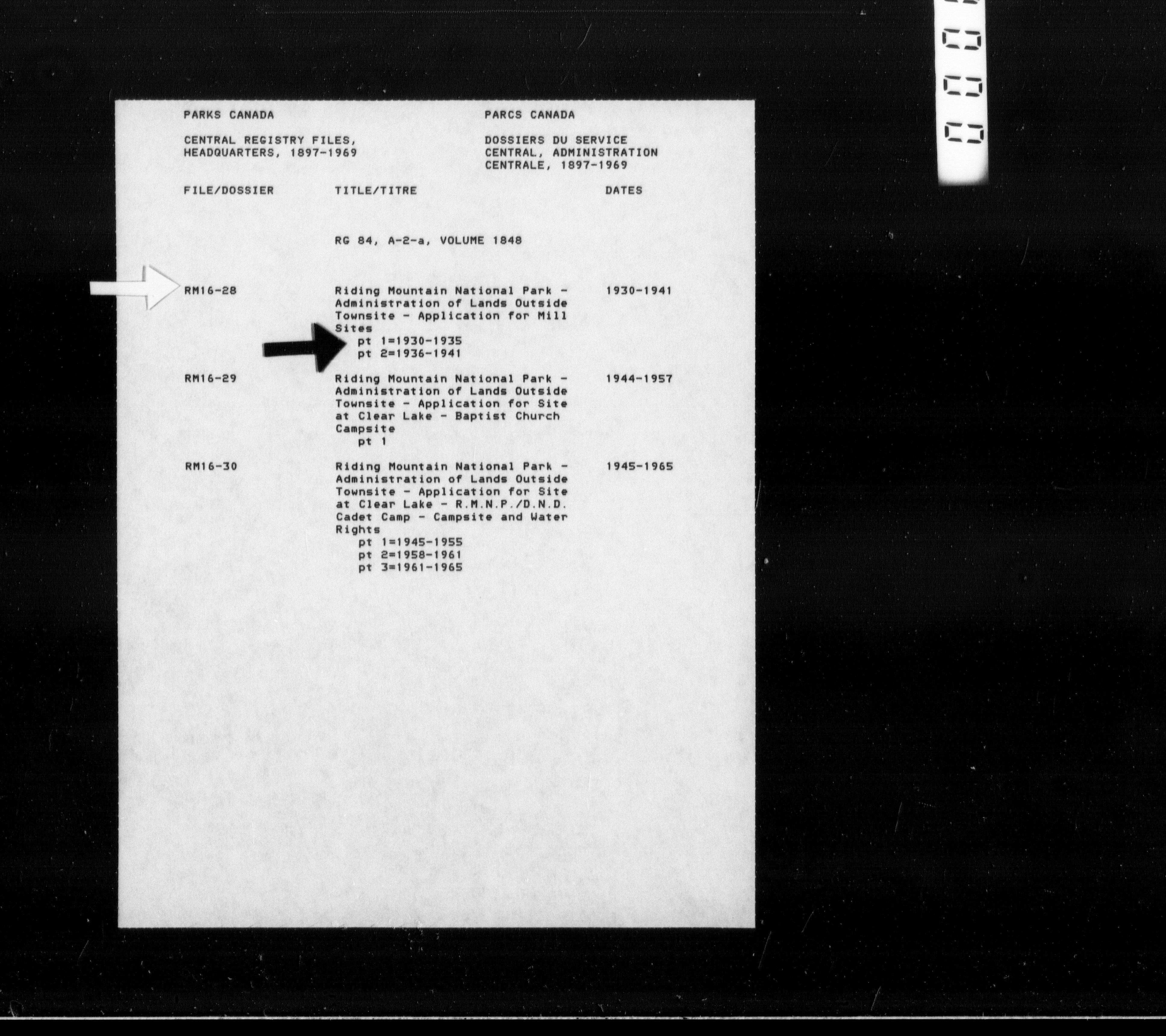 Department of Canadian Heritage, Canadian Parks Service : Park/subject classification system - 9772