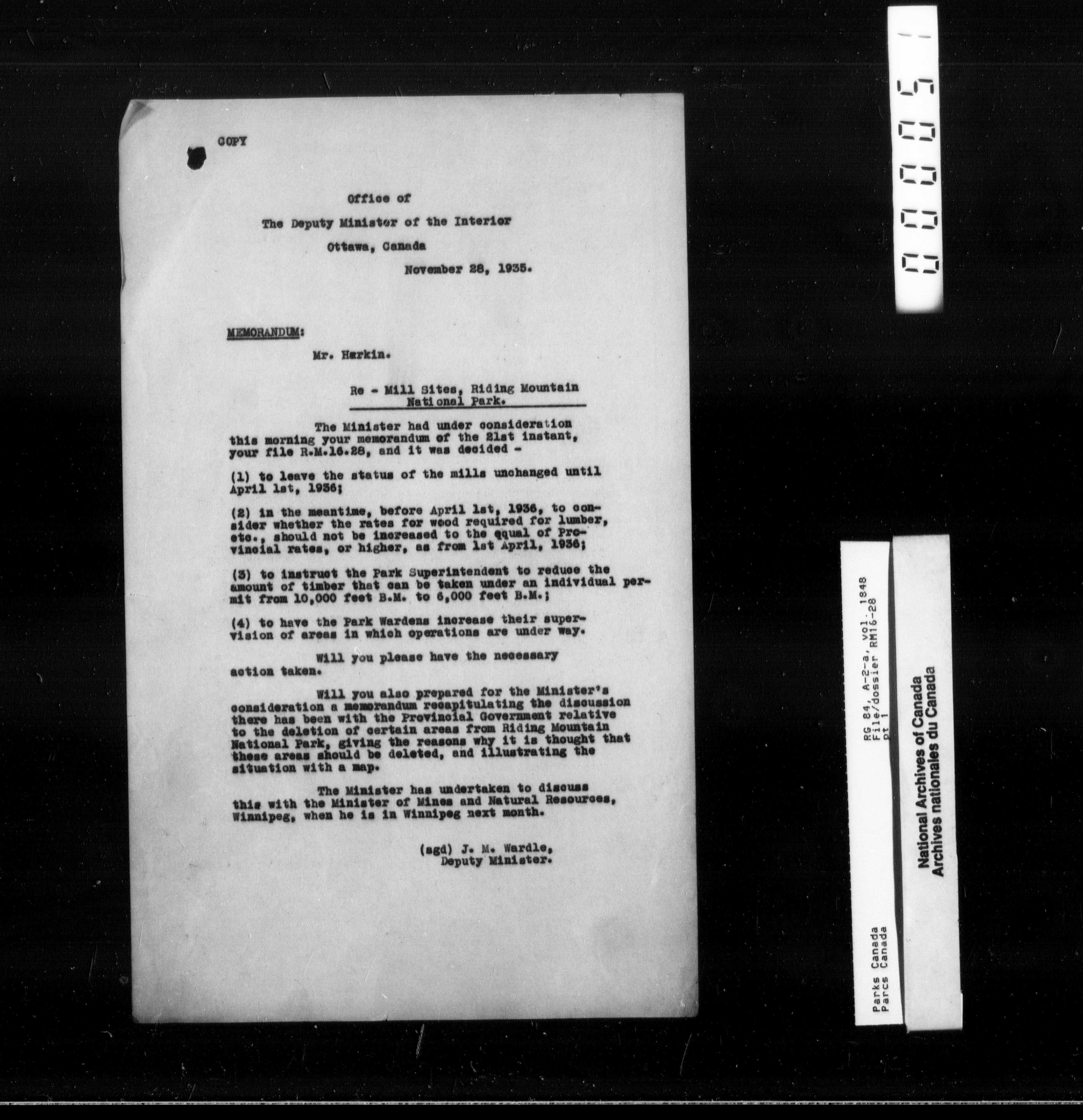 Department of Canadian Heritage, Canadian Parks Service : Park/subject classification system : T-9772