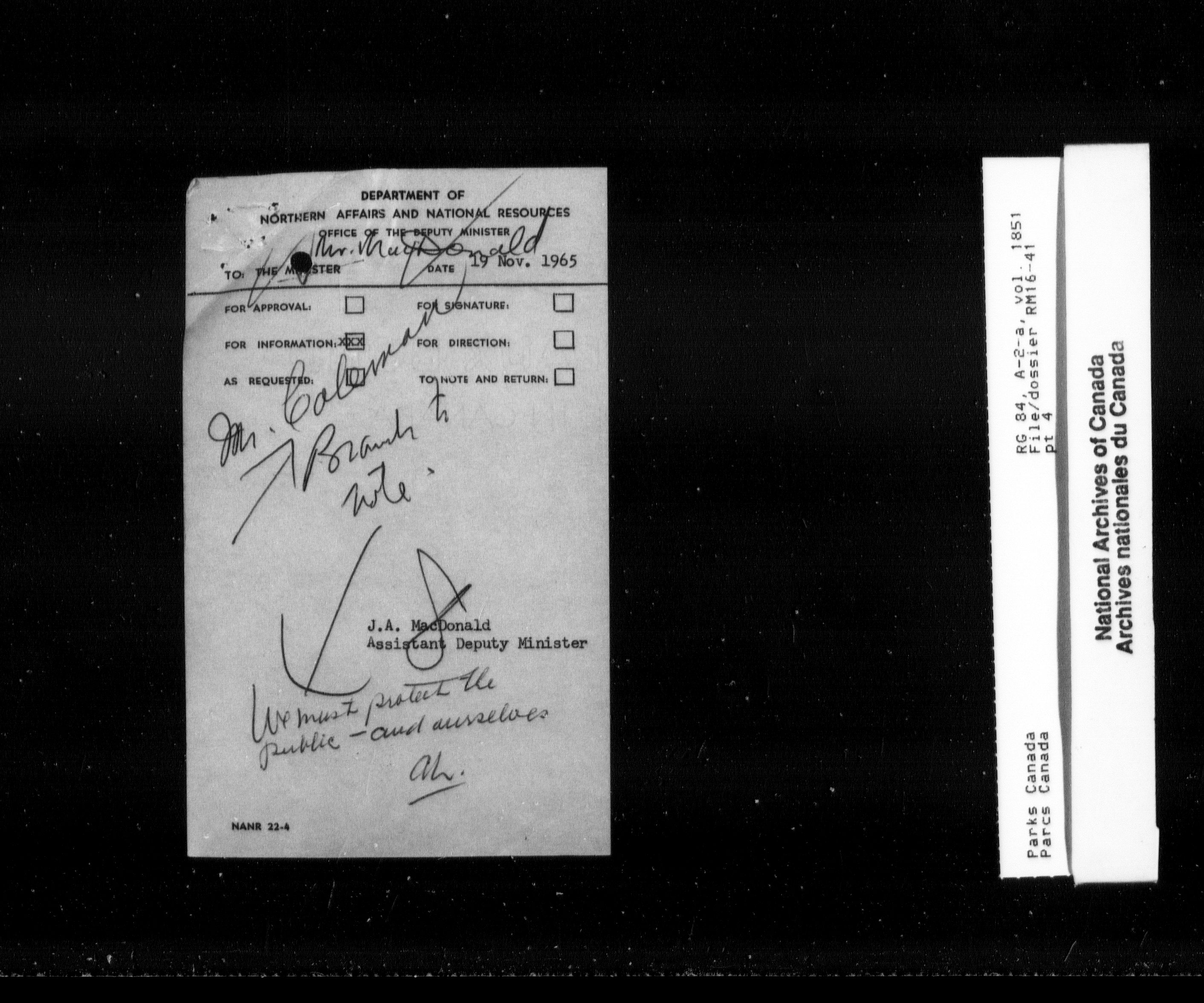 Department of Canadian Heritage, Canadian Parks Service : Park/subject classification system - 9774